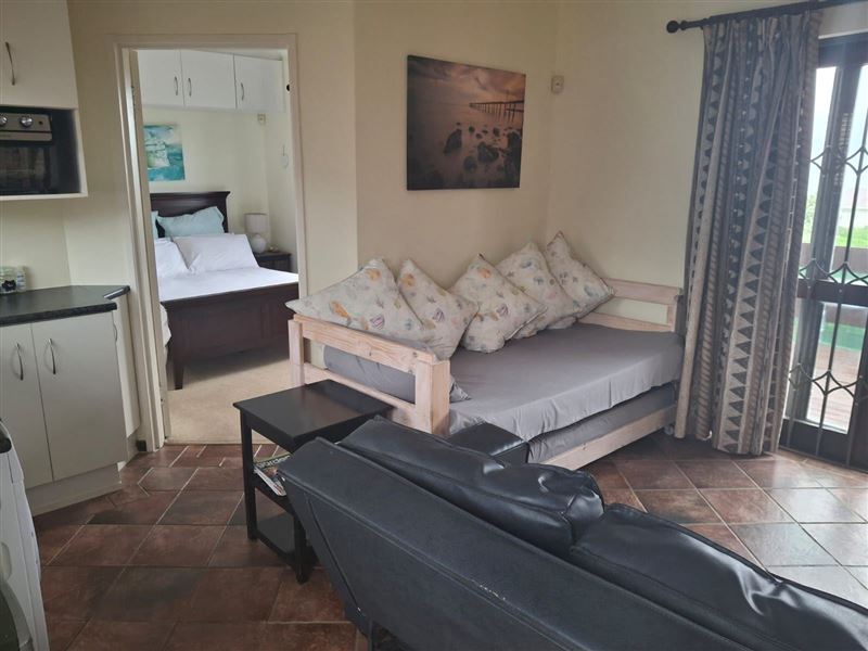 Ocean Tides is a private freestanding self-catering unit in the picturesque village of Kini Bay, Port Elizabeth. It has stunning views over the sea and a minute walk to a safe sandy swimming beach. The unit offers a sea facing 1 bedroom double bed with en-suite shower and double bed sleeper couch in the sunny sea facing open plan lounge/kitchen leading out onto the deck. Enjoy a braai/barbeque on the deck while looking at the dolphins and the whales or relax under the tree in the sunny private garden while the children play on the kiddies jungle gym, slide and hopscotch. Private parking next
