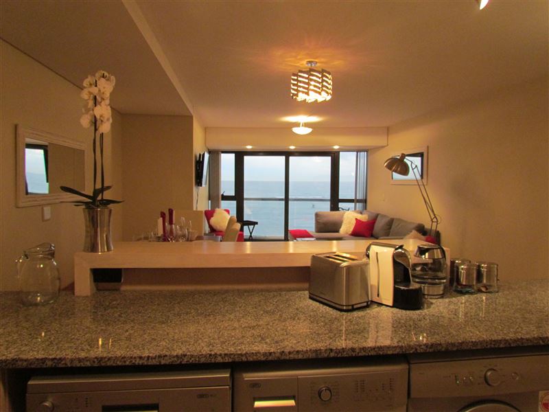 Luxury modern beachfront apartment, with 180-degree views of False Bay. A sophisticated touch of romance awaits you. A few steps away from the beach, or just view the amazing sunset from your balcony. Enjoy a dip in the pool, or T off at one of the stunning golf courses nearby. Fully equipped luxury modern apartment sleeping four in two bedrooms. The unit has one queen-size bedroom with an en-suite bathroom and a second room with two single beds and an en-suite. The kitchen features, fridge/freezer, dishwasher, washing machine, tumble dryer,pod coffee machine and all other electron