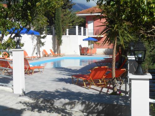 Set amidst a lush garden within 1.5 km from Lourdata Beach in Vlachata the family-run Odysseas Studios has a bar-restaurant a swimming pool and a children's playground. It offers self-catering units with views over the Ionian Sea and provides free WiFi in public areas.Opening to a balcony the air-conditioned studios of Odysseas have a kitchenette with fridge and cooking hobs and a private bathroom with shower. Each is soundproofed and equipped with a TV.Guests will find restaurants bars and mini markets within a short walk from the property. Argostoli Town is 12 km away and Kefalonia International Airport is 10 km away. Staff can arrange car rental and free private parking is possible on site.