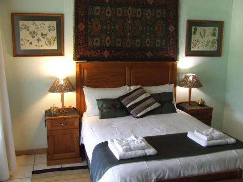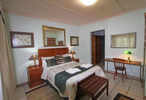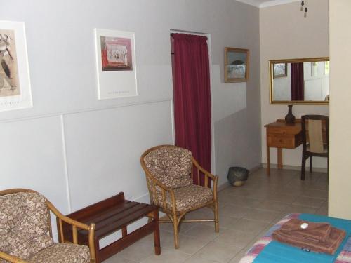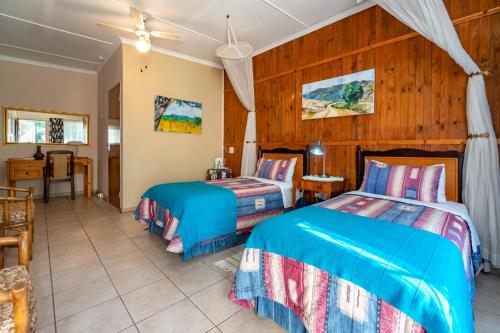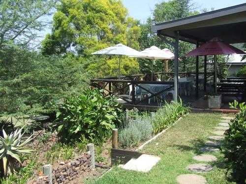 Situated on 13 acres of land 9km outside Barberton on R38 Kaapmuiden road. The guest house is surrounded by indigenous lowveld vegetation and many relics from the gold rush days of Barberton. Accommodation in rooms with private entrance separate from the main house all with private facilities (either bath or shower) Facilities for wheel chairs are available. Accommodation consists of five double rooms, a family unit with two bedrooms, bathroom and small lounge, one twin bed room and one single room. Accommodation is on a bed and breakfast basis with dinner available on request.. We are about 1