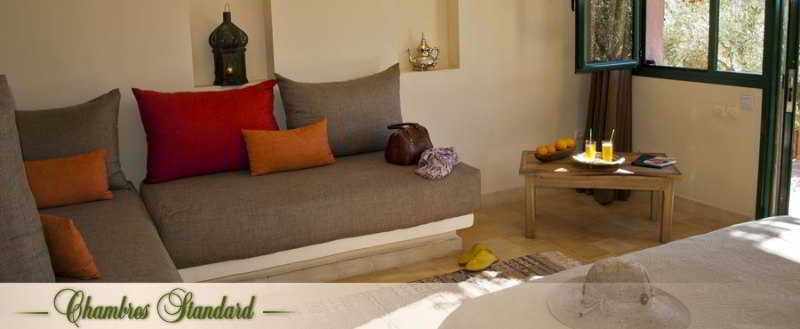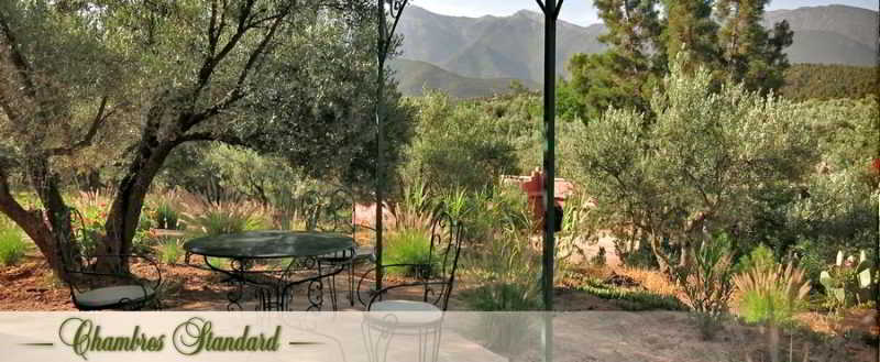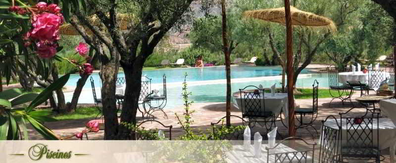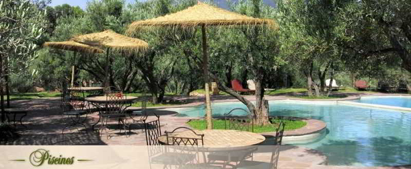 Located one hour from Marrakech, in a centenary olive grove of 4 hectares, Restaurant, offers: 9 bungalows, a restaurant terrace, fireplace restaurant, the hut (bar), 2 pools, 1 wellness with traditional hammam, 1minigolf ...! We welcome you on the occasion of a stay, a weekend or a day combining dining pleasure and relaxation. The hotel can accommodate up to 27 people, offers 9 bungalow-type rooms, air conditioning, combining space, comfort and charm. six of them have stunning views of the Atlas Mountains. They also have a bathroom and a private terrace.