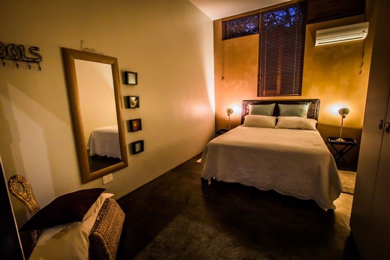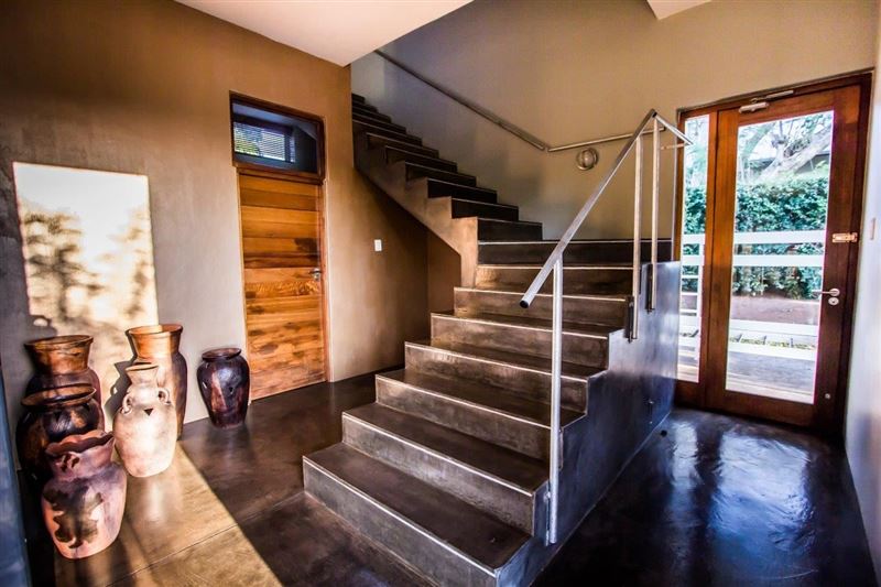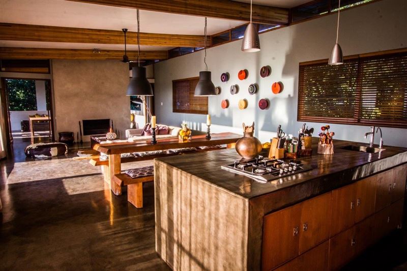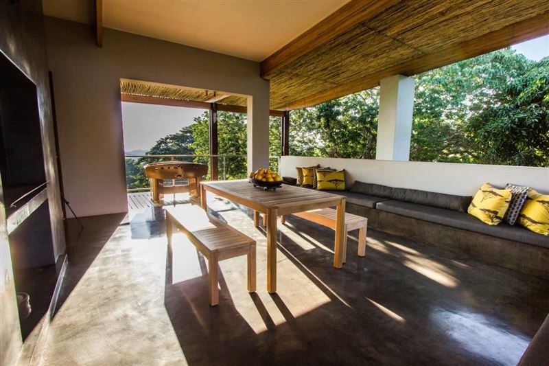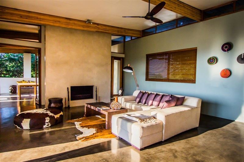 Ongoye View Residence in Mtunzini is located on a large spacious plot, just a few minutes away from the Indian Ocean, the beach and golfcourse. And only 1 hour from the wildparks.The four bedrooms, two bathrooms and spacious living can easily accommodate from 2 to 10 persons. Ideal for families, but also couples. Here you can really wind-down, de-stress and come as close to nature as possible. The 4 bedrooms downstairs feature modern décor and there are 2 bathrooms. In the living upstairs is a large sofa, dining table and design chairs around an open fireplace. The kitchen is fully equipped.