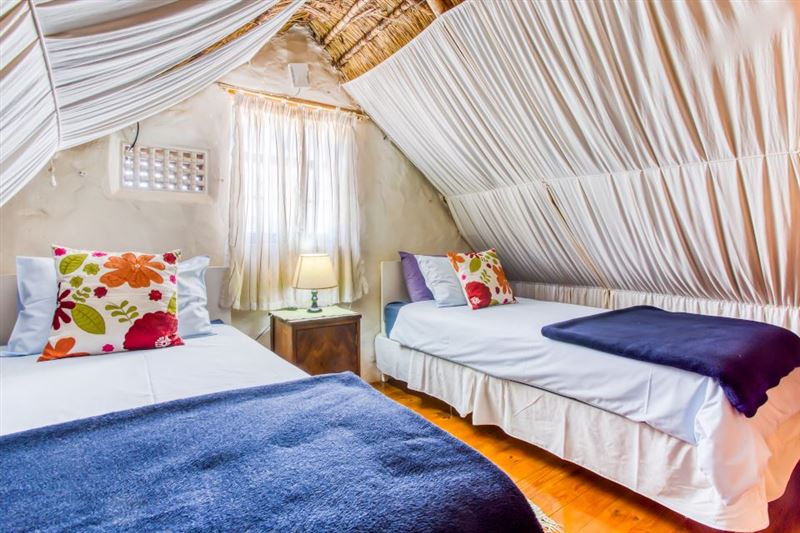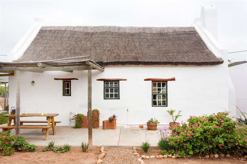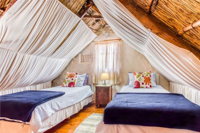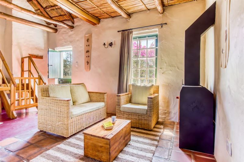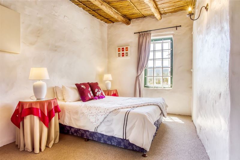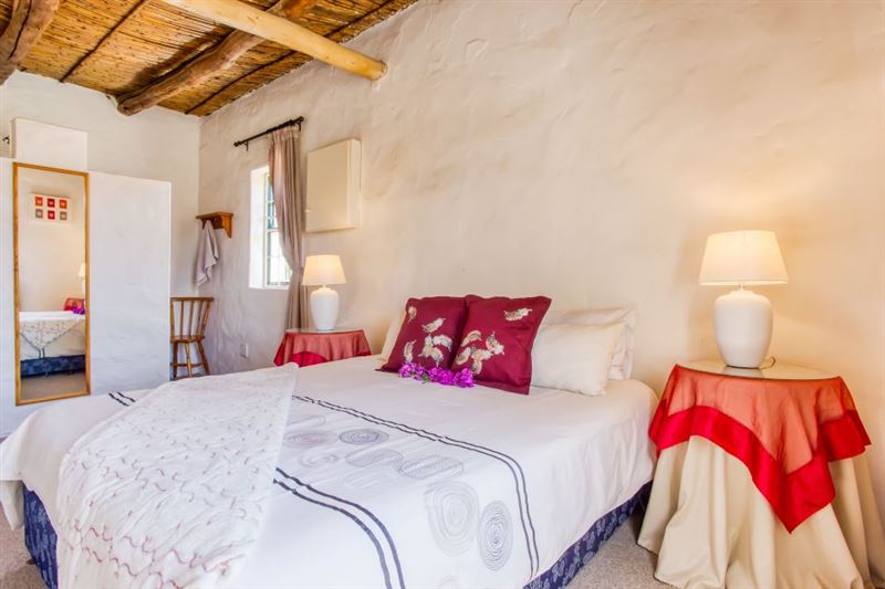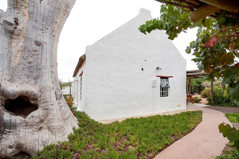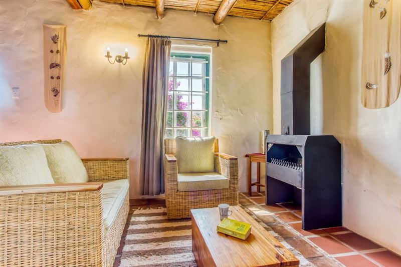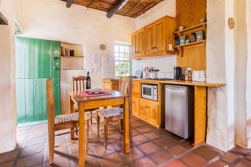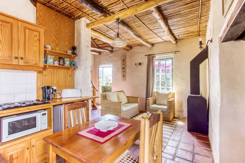 Ons Huisie is situated in the quiet side of the village, yet close to shops. It is guarded by the trunk of an enormous gum tree, whose roots once reached through the floor and beyond; now a memorial to itself. We have just the right amount of neighbours and a clear view of the mountains across the fields from our front door.This cottage has a bedroom with a queen-size bed and a mezzanine with two single beds. There is an en-suite bathroom with a shower and a separate bathroom with a bath and wall shower. This traditional whitewashed-thatched cottage has a renovated kitchen fitted w