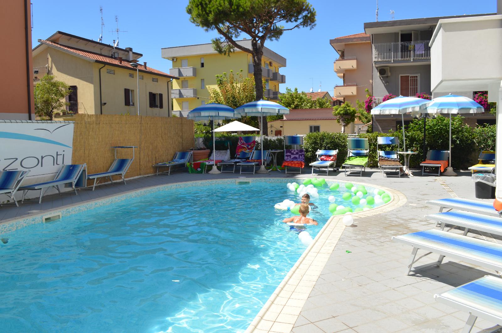 Located just 30 meters from the sea The Hotel Horizons offers a friendly service. Hotel Horizons invites you to enjoy a varied breakfast buffet with homemade pastries and fresh products, do not miss also the angle with savory products to suit all tastes of national and international guests. The property is located in the quiet resort of Torre Pedrera (the district north of Rimini), the trade fair area / miniature Italian / Rimini tollgate north, a few meters from the beach offers modernly furnished rooms.
