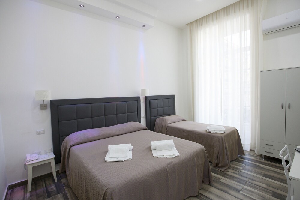 This hotel boasts a spectacular setting, at the heart of Naples. The hotel lies just 450 metres away from Napoli Centrale Train Station. A wealth of intriguing attractions can be found nearby, offering visitors an insight into the rich culture and history of the city. The hotel lies just 350 metres away from Porta Nolana Metro stop, which offers ease of access to other areas of the city to be explored. The hotel is located just 2.5 km away from the main square Piazza Plebiscito. This charming hotel adds a splash of style to its surroundings. The guest rooms exude contemporary style, featuring neutral tones complemented by bright colours. Guests can enjoy a delightful Italian breakfast in the mornings, before setting off to explore the city.