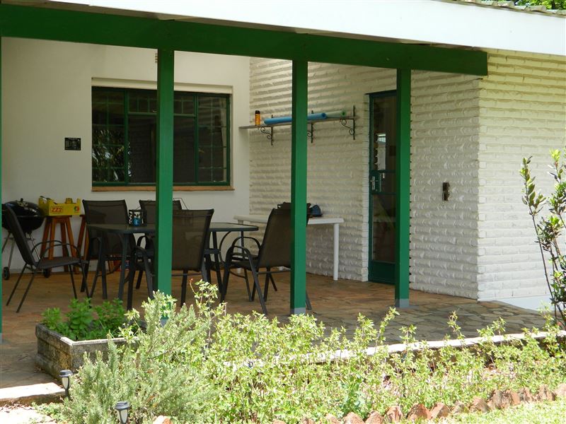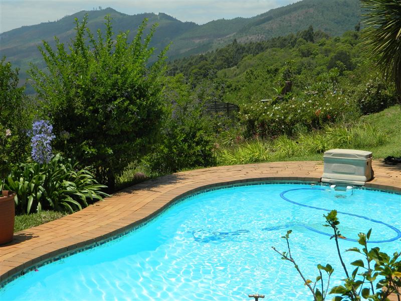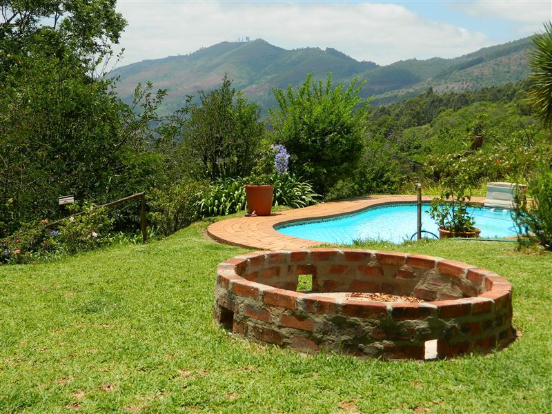 We are a non-smoking facility but do offer ashtrays outside on the covered patio. There is no TV but we provide board games, playing cards and a dartboard on the patio, along with a kettle braai and seating for six people. The gardens offer a good view of the valley over the sparkling swimming pool.