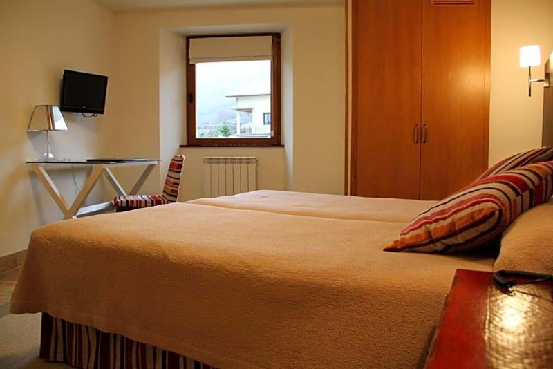 This hotel is located in natural surroundings at the foot of the mountain in the town of Galdeano. Estella is 8 km away, the nearest bus station is 9 km away and it is 12 km to the Monasterio de Iratxe and 15 km to the Monasterio de Iranzu. It is just a few minutes by car from Pamplona (40 km), Vitoria or Logroño. The Roncal ski region is 134 km from the hotel.Reformed in 2009, this charming hotel comprises a total of 17 rooms including 1 suite and 1 junior suite spread over 3 floors. Facilities on offer to guests at this establishment include a lobby area with a 24-hour reception and check-out service, a hotel safe, lift access, a TV lounge and air conditioning in all common areas. Younger guests will enjoy the kids' club and there is a cafe, a restaurant and conference facilities. Guests may take advantage of the WLAN Internet access and the room and laundry services (both for an additional fee). There is a car park and covered underground parking is available for those arriving by car (the latter for an additional fee).The welcoming rooms come with a private bathroom with a shower and a hairdryer. They are also equipped with a telephone, a TV, Internet access, a minibar, a safe and central heating.Guests may relax with a massage.Guests are served a continental breakfast each morning and the evening meal may be enjoyed à la carte.