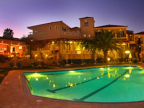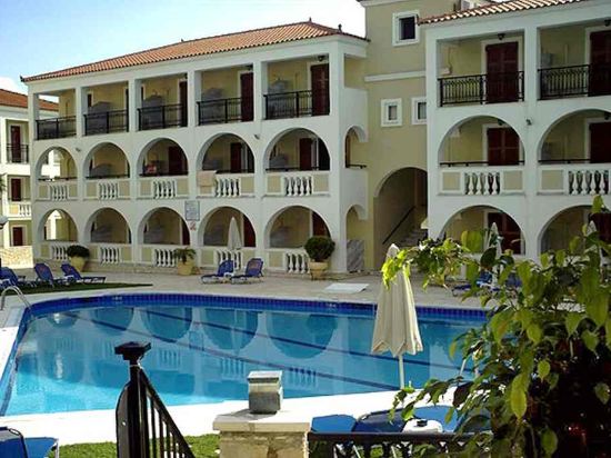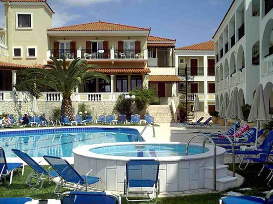 Located in a green landscape surrounded by olive groves and lanes on the outskirts of Laganas resort, the centre of Laganas town is 10 minutes from this family-friendly hotel and offers a wide selection of bars, pubs and restaurants. Laganas beach is 1 km from the hotel and Zakinthos is around 8 km away. Zakynthos International Airport is approximately 5 km from the hotel.This is a family-friendly hotel with two 3-storey blocks, a warm atmosphere, and excellent facilities and services, including a restaurant, WLAN Internet access and a currency exchange service. Further facilities available to guests at the 60-room hotel include 24-hour reception and check-out services, a hotel safe, and lift access.All rooms are clean, bright and spacious, making for a pleasant stay. Each room features individually controlled air conditioning (for a fee), a TV, telephone, hairdryer, fridge with extra charge, an en suite bathroom with bath or shower, and a balcony. Internet access, a safe and a radio also feature in all rooms as standard.The hotel offers an outdoor freshwater swimming pool, a children's pool, a sun terrace and a poolside snack bar with sun loungers laid out for use. Guests may also relax in the hot tub or enjoy a game of table tennis or pool/snooker (fees apply for both). The hotel organises entertainment programmes for adults (fees apply). Sun loungers and parasols can be hired for a fee on the nearby sandy beach.A tasty continental breakfast is served each morning à la carte and set menu options are available for lunch.