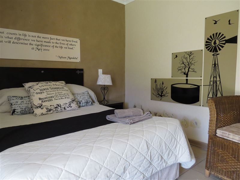 Guests have a choice of 27 en-suite rooms each comfortably furnished with a double or twin beds and a TV with M-Net. Tea and coffee-making facilities are provided and the rooms are cooled with ceiling fans and heated with a wall heater during winter. Breakfast as well as buffet dinners are available on request. Breakfast is R95 per person and dinner R130 per person.