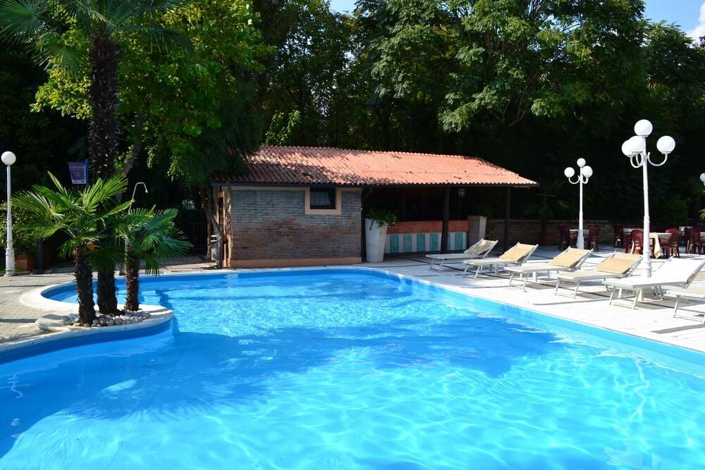 This classic-style hotel offer guestrooms equipped with flat-screen televisions with satellite channels and Wi-Fi access. In addition to a restaurant, the hotel offers two outdoor swimming pools, parking space and a hearty breakfast buffet. The hotel also offers a bar and lounge and a beautiful garden where guests will be able to relax. The hotel is located close to some of the area's most attractive tourist spots such as Chiesa di Santa Maria dei Servi, Palazzo Calderini and San Rocco Oratory. The Bologna airport is roughly 50 km away from the hotel.