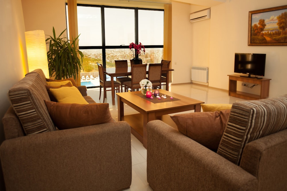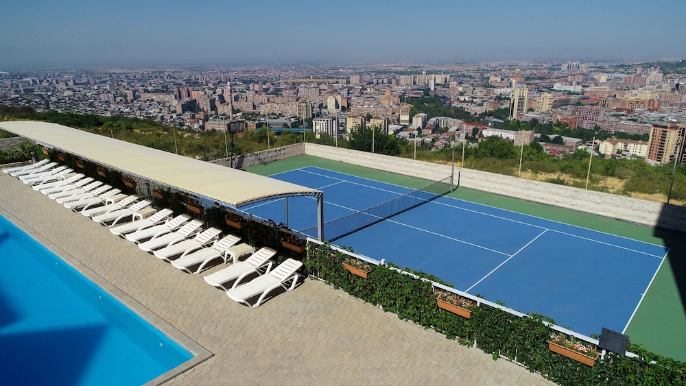 Property Location With a stay at Panorama Resort in Yerevan, you'll be in the suburbs and minutes from Yerevan TV Tower and close to National Gallery of Armenia. This 4-star aparthotel is within close proximity of Hanrapetakan Stadium and Yerevan State University.Rooms Make yourself at home in one of the 82 guestrooms, featuring kitchens with full-sized refrigerators/freezers and stovetops. Rooms have private balconies. LCD televisions with satellite programming provide entertainment, while complimentary wireless Internet access keeps you connected. Conveniences include safes and coffee/tea makers, and housekeeping is provided daily.Rec, Spa, Premium Amenities Be sure to enjoy recreational amenities, including an outdoor pool, an outdoor tennis court, and a 24-hour fitness center. Additional amenities include complimentary wireless Internet access, concierge services, and babysitting/childcare surcharge. Guests can get to nearby shops on the shuttle surcharge.Dining Enjoy a satisfying meal at a restaurant serving guests of Panorama Resort. Relax with your favorite drink at a bar/lounge or a poolside bar.Business, Other Amenities Featured amenities include a 24-hour business center, dry cleaning/laundry services, and a 24-hour front desk. Planning an event in Yerevan? This aparthotel has facilities measuring 538 square feet 50 square meters, including a meeting room. A roundtrip airport shuttle is provided for a surcharge available on request.