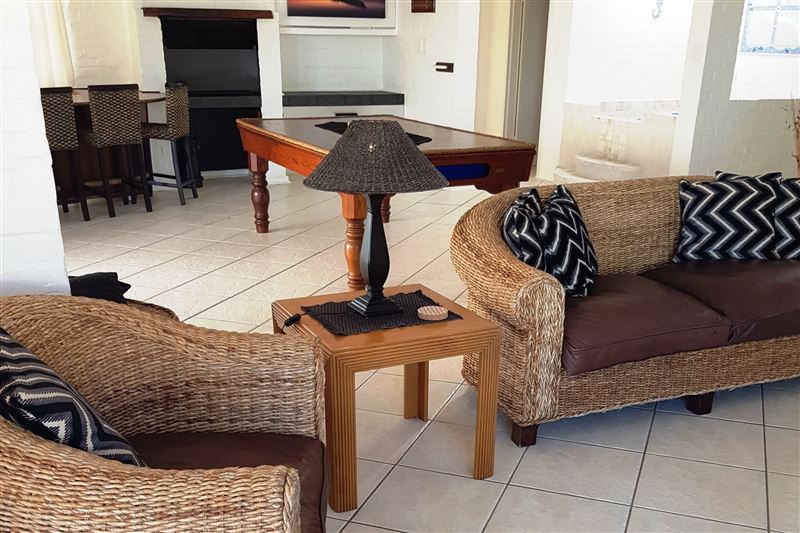 Pegasus Place is a neat and spacious home situated within the Paradise Beach development is an exclusive security estate. This lovely house is a short walk from the private beach of the security estate. The house is spacious with an open plan living area on the first floor with a private built-in braai both upstairs and in the enclosed back yard.Paradise Beach is a secure complex that provides an authentic Greek like island feel. It is situated next to Mykonos and guests have access to a beautiful secluded stretch of private beach.This house caters for f