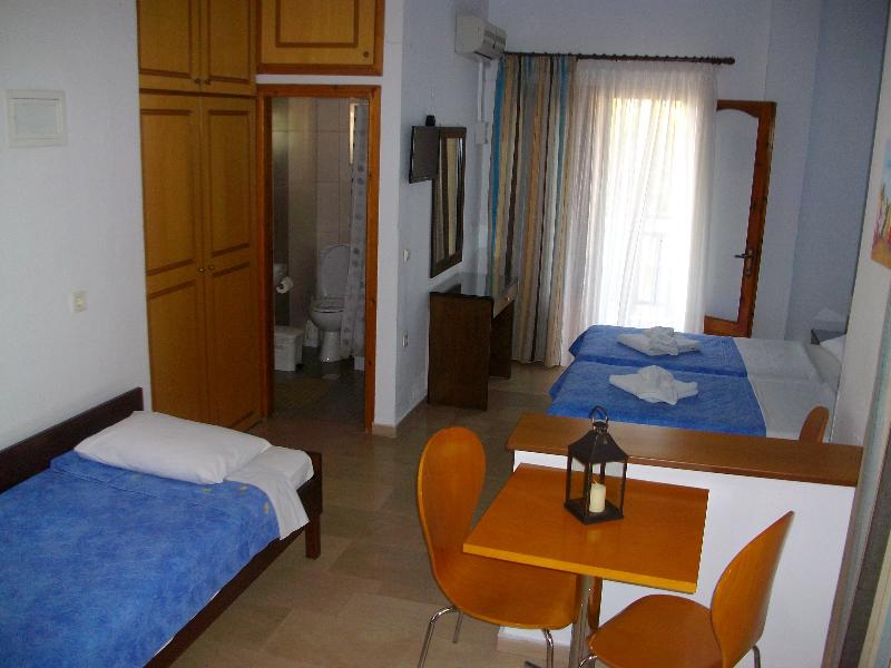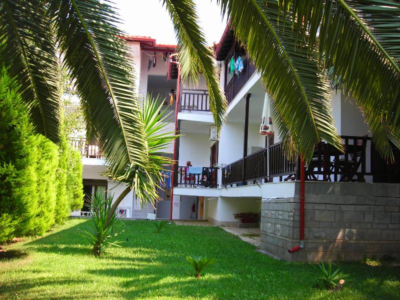 In a peaceful place in Pefkohori, only 70 meters from the sand there is our hotel.It is surrounded by thick vegetation and it is an ideal choice for calmness and relaxation.You can go swimming either in the sea, which is very close or in our swimming pool, having your drink or eating a snack from our bar.