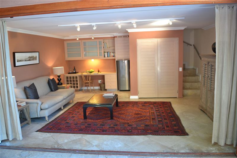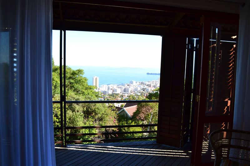 Pepper Tree House is nestled in the trees, high on the slopes of Lion’s Head, in a quite cul-de-sac, with spectacular views over the Atlantic Ocean and seaboard.The airy, spacious bedroom is located upstairs with gorgeous views of Robben Island and Table Bay, enjoyed from its private balcony. The downstairs living area opens onto a large, sunny patio where you can lounge in the dappled shade of a Pepper Tree. The sea views and gas barbeque makes the patio ideal for some al fresco relaxation and dining. Pepper Tree House is private, gated and secure, with se