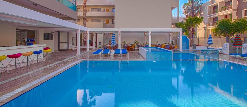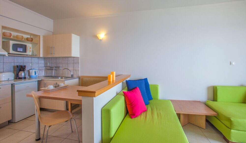 Located just 500 meters from the harbour of Kos and 300 meters from the Marina of Kos, a stunning Greek island, this hotel offers the perfect location for those customers wishing to explore this vibrant region and discover all its hidden treasures. Guests will find a bus stop just 10 metres from this charming establishment and Kos International Airport is a 30-minute drive from the hotel. A host of air-conditioned accommodation options are provided to suit all clients' needs, including two types of suites, which all come with a fully equipped kitchen, a living room and a private balcony or terrace from which to appreciate the amazing pool views. Complimentary Wi-Fi internet access is provided for guests' convenience. As for the facilities, a stunning outdoor swimming pool and a children's' pool are available at this stylish property.