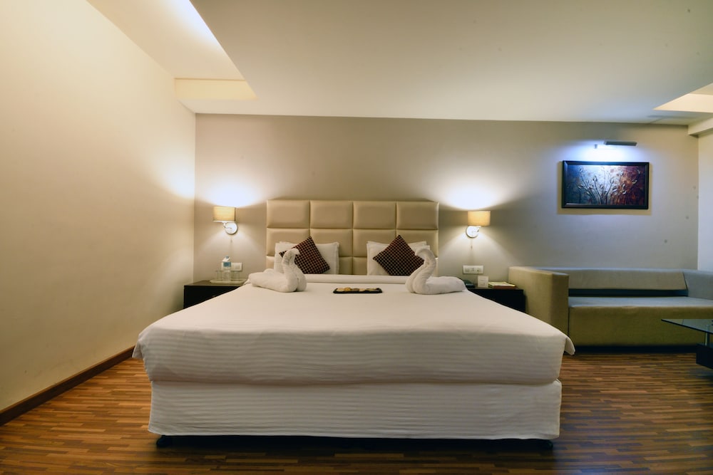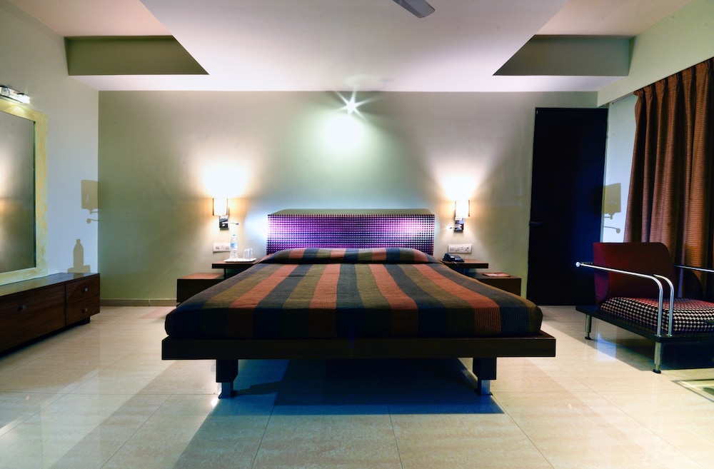 The hotel is located besides Gujarat Gram Haat near Anjali Cross Roads in Vasana, Ahmedabad. The establishment provides easy access to some of the best business and shopping locations of the city. The hotel is located 4 km from Gandhigram Railway Station and approximately 13 km away from Ahmedabad Airport.The 34-room hotel provides accommodation with modern architecture and well-designed ultramodern interiors. Hotel services include a banquet and conference hall, restaurant, currency exchange and Internet access. In addition to a lobby area with 24-hour reception service, hotel safe and lift access to the upper floors, further facilities available to guests at this air-conditioned accommodation include a café, newspaper stand and a car park.The hotel provides impressively spacious and elegantly furnished deluxe rooms to experience comfort in an entirely new way. All rooms are spacious, smartly designed and provide modern amenities such as a minibar, LCD television, an electronic safe and wireless Internet access. In addition to a private bathroom with a shower and bathtub, further standard features of accommodation units include a direct dial telephone, tea and coffee making facilities and a double or king-size bed and individually regulated air conditioning and heating.