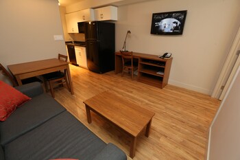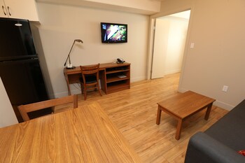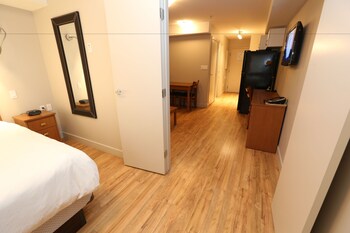 General Description 3.5 star accommodations All-suite hotel Affordable accommodations Designed to meet families needs Location Located in the heart of downtown Local Attractions Close to local attractions such as MacDonald Island Park Services Daily house keeping service Free Wifi Accommodations All guestrooms are fully equipped with kitchenettes Microwave Air conditioning Cable/satellite channels Safety deposit box