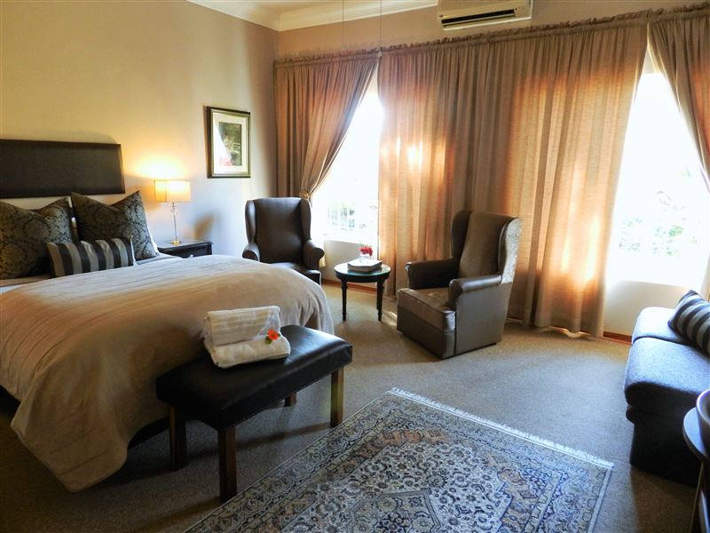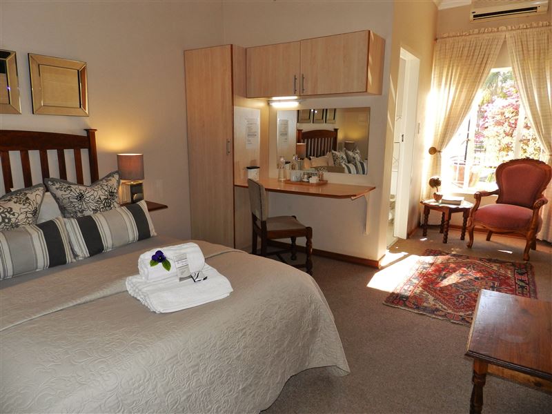 Personal service and quality accommodation is offered at the Platinum Guest House which is set in a tranquil garden and a quiet suburb only minutes from the town centre.The guest house offers all the luxuries expected from a top-class accommodation establishment. Spacious and stylish rooms all feature king-size and queen-size beds with en-suite bathrooms. Facilities include DStv, Wi-Fi, air-conditioning, tea trays and pure cotton linen.Hearty breakfasts are served in the dining room or on the patio in summer. There is also ample secure parking for guests. The town a