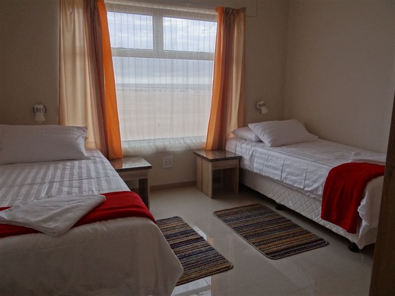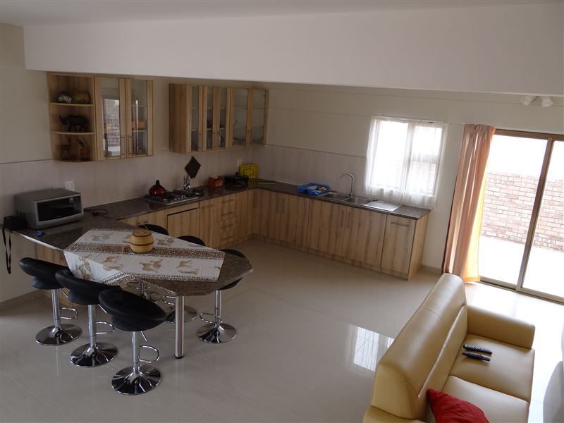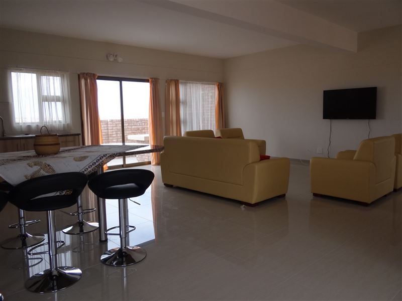 2 Modernly furnished 3 bedroom duplex self catering units ( Flat 1 and 2) with two full bathrooms, lockup garage, large ground floor living room with kitchen and outside braai. Five minutes drive from the beach. User friendly alarm system, full Dstv, 49" TV, chest freezer, fridge and washing machine. Daily cleaning included on work days. 1 Modernly furnished 2 bedroom duplex self catering unit (Flat no. 3) with two full bathrooms, lockup garage, large ground floor living room with kitchen and outside braai. The second bedroom has a stacked bunk bed intended for children and has its own bathroo