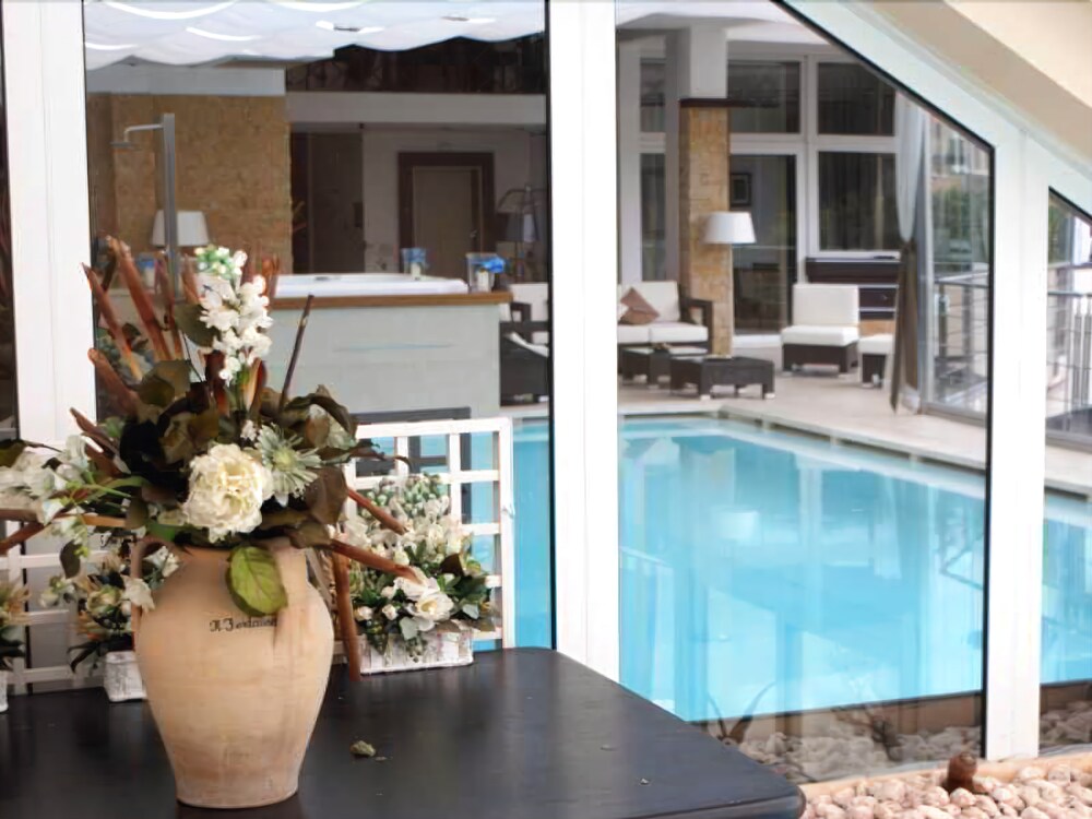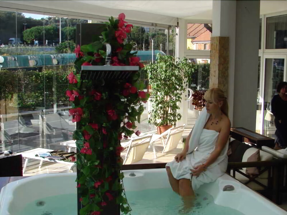 Property Location With a stay at Poggio Hotel in Arenzano, you'll be minutes from Golf Tennis Club Pineta Di Arenzano and Bambino Gesu di Praga Church. This 4-star hotel is within the vicinity of Arenzano Beach and Mount Reixa Peak.Rooms Make yourself at home in one of the 40 guestrooms featuring minibars and LCD televisions. Complimentary wireless Internet access keeps you connected, and digital programming is available for your entertainment. Private bathrooms with showers feature complimentary toiletries and bidets. Conveniences include phones, as well as safes and desks.Rec, Spa, Premium Amenities Be sure to enjoy recreational amenities including a spa tub and a seasonal outdoor pool. Additional amenities include complimentary wireless Internet access and discounted use of a nearby fitness facility.Dining Satisfy your appetite at the hotel's restaurant, which serves lunch and dinner, or stay in and take advantage of 24-hour room service. Quench your thirst with your favorite drink at a bar/lounge.Business, Other Amenities Featured amenities include express check-in, dry cleaning/laundry services, and a 24-hour front desk. Event facilities at this hotel consist of conference space and meeting rooms. Free self parking is available onsite.