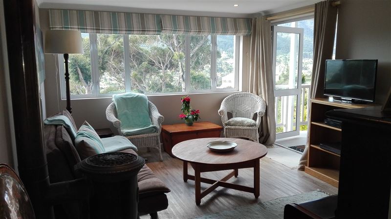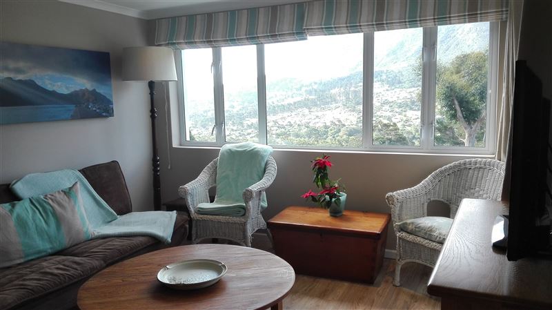 Lovely spacious apartment on the mountainside in Hout Bay. All rooms lead onto a covered patio which has stunning views of the surrounding mountains. Quiet safe area. Main bedroom has an en-suite bathroom. The second bathroom has a shower and can be utilized by guests or children/adult sleeping on the sleeper couch in the living room. Rental includes DSTV, wi-fi. portable aircon. A Infra-red sauna and water filter for drinking water are also available. The patio overlooks a small garden. Hout Bay offers a variety of wonderful holiday experiences. The apartment is situated near the famous