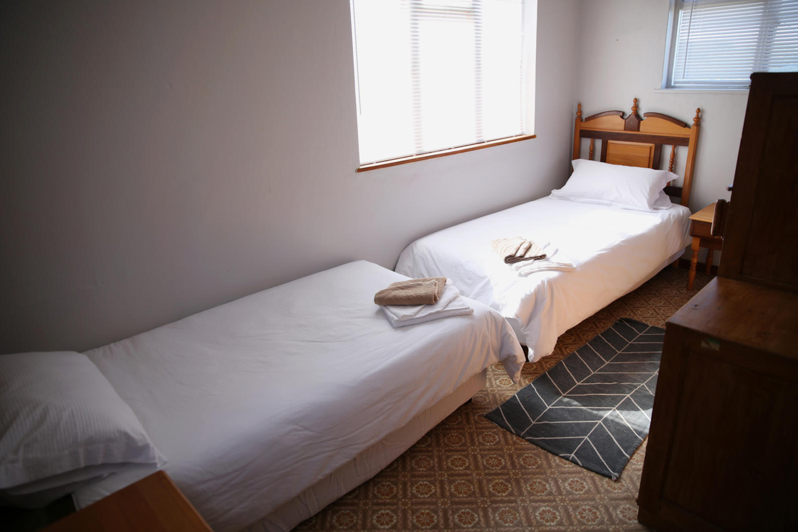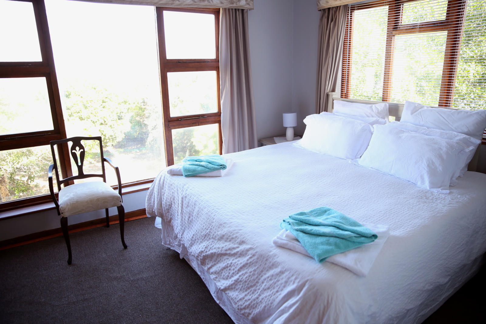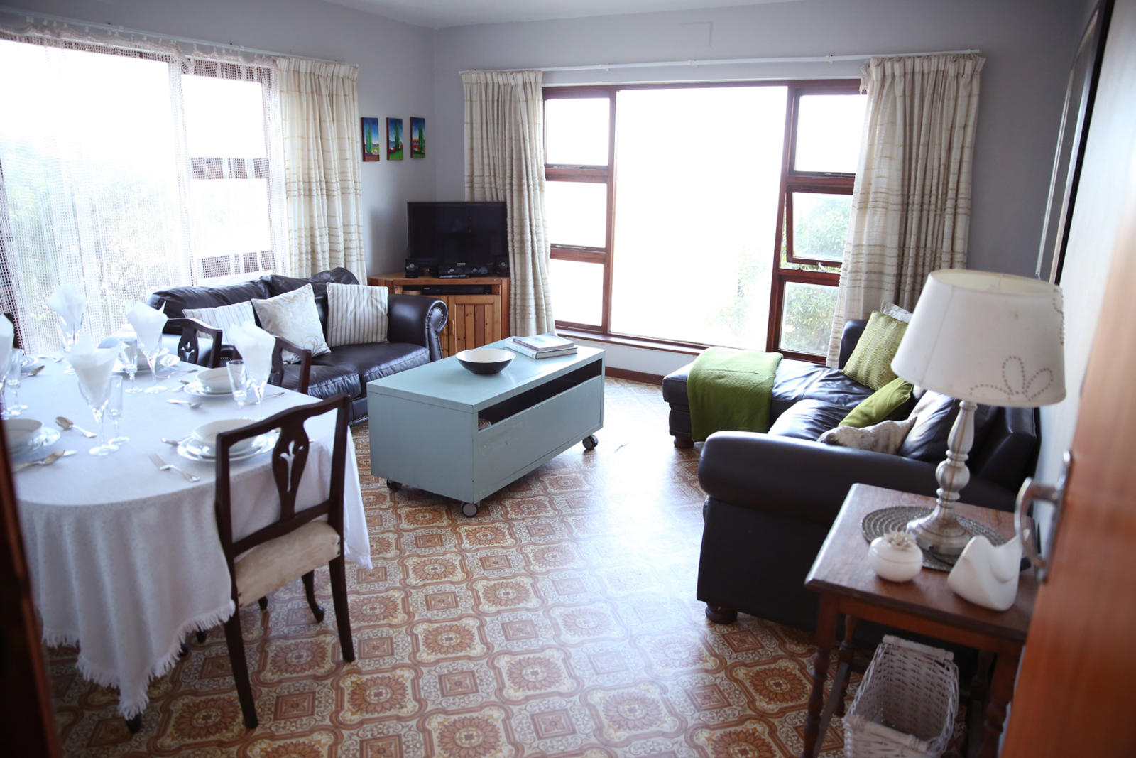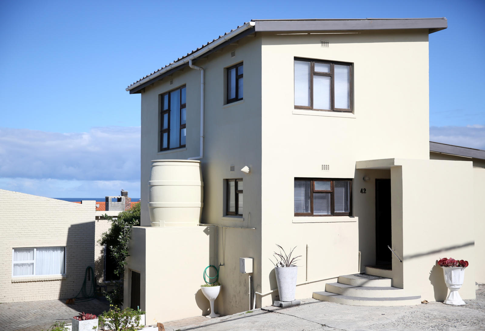 Built in the 70's as one of the first houses in the area, Portmanteau offers self-catering holiday accommodation, located in a tranquil neighborhood.Portmanteau comprises three bedrooms, a bathroom, a living room area and a well-equipped kitchen. The first bedroom is fitted with a king-sized bed. The second room has a queen-sized bed, with views of the ocean and a private wet-room. The third bedroom is fitted with twin beds.A dishwasher can be found in the kitchen and warm water is provided by a gas geyser. The living room can easily seat six people and has a TV with Ne