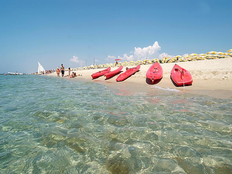 Featuring a large waterpark with slides Porto Kaleo Hotel Village lies 350 metres from white sand beaches near Cutro in Calabria. All its rooms have a terrace or garden access.Rooms at the Porto Kaleo are air conditioned and functional offering mini fridge TV and private bathroom with shower. Some rooms have high speed Wi-Fi access.Hotel Kaleo's restaurants serve a buffet style breakfast lunch and dinner. Gluten-free products are available if requested in advance. There are also special facilities for families with very young children including a kitchen where parents can prepare baby food and bottles.The complex boasts a large outdoor swimming pool as well as tennis courts and on site water sports facilities. There is a fully equipped gym and a children's playground.A shuttle service connects the resort to Crotone Airport and Botricello Train Station both a 15-minute drive away.