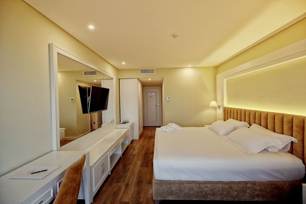 Set on a private beach area in Golem Premium Beach Hotel offers an outdoor pool with sun terrace and views of the sea. Guests can enjoy the on-site restaurant or have a cocktail at the bar. Free WiFi is available throughout the hotel and free private parking is available.The rooms include a flat-screen TV. Certain rooms feature a seating area where you can relax. Some units have views of the pool or garden. Rooms include a private bathroom equipped with bath or shower. Extras include slippers free toiletries and a hairdryer.Hotel restaurant offers a variety of Mediterranean dishes and local specialities. Guests can book a massage for an additional fee while children can have fun in the kids' pool. There is a 24-hour front desk.Durrës is 5 km from Premium Beach Hotel while the distance to Tirana is 39 km. Divjaka-Karavasta National Park is at a distance of 47 km.The nearest airport is Tirana Airport 39 km from the property. Airport transfer can be arranged for a fee and upon previous request.