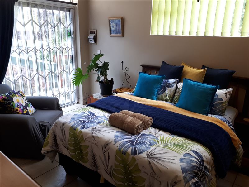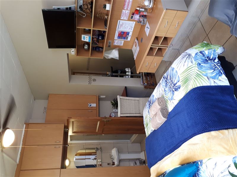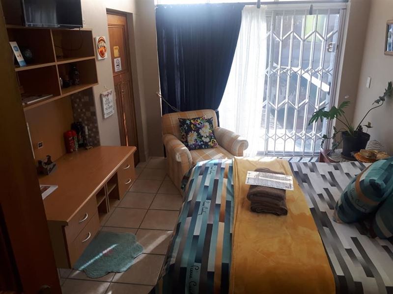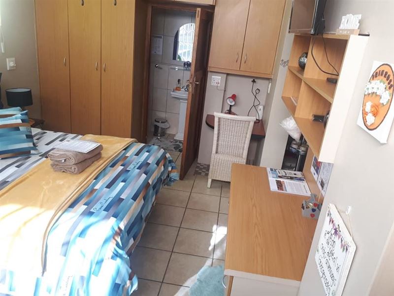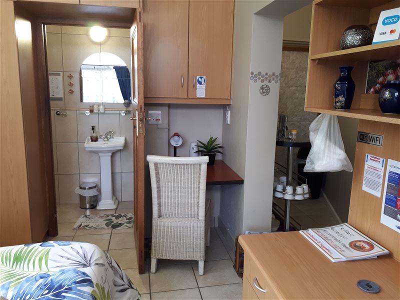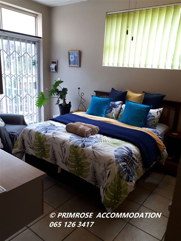 Primrose Overnight Accommodation Unit B is a COMPACT en-suite room with a queen-size bed, which sleeps two guests. Ideal overnight stop.The unit is equipped with coffee-making facilities, a fridge, and a microwave, and there is a TV with Android box available (for streaming apps like Netflix and Showmax (with sport channels) - NO cable or DStv available). There is a desk available for business people. The room has a ceiling fan and the windows is tinted to keep you cool during the summer daysGeorge offers visitors access to various beaches, such as Herold's Bay, Glentan