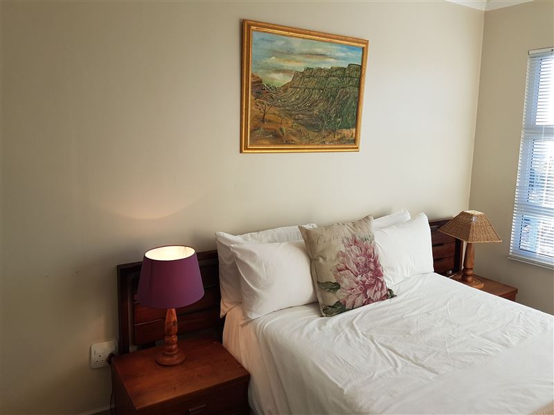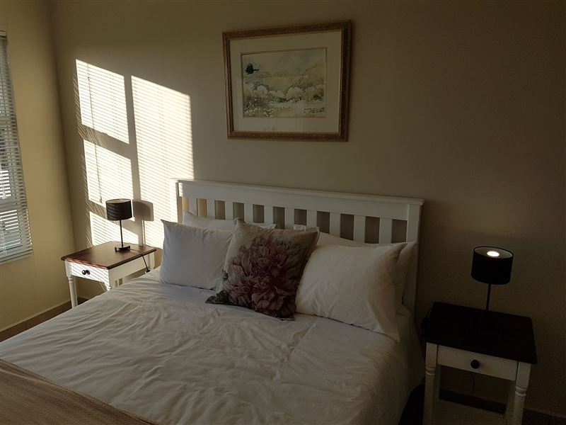 Protea Apartment is located in an apartment building in the small town of Dana Bay, outside of Mossel Bay. It offers self-catering accommodation for up to four adults, with the beach a mere 3 km away.The apartment has two bedrooms and one full bathroom. The open-plan living area has a well-equipped kitchen with a conventional oven, a microwave, an electric flying pan and tea and coffee-making facilities; we provide all cutlery and crockery. The lounge area has ample seating and a TV with a DStv connection, guests will need to bring their decoder and smart card.The small