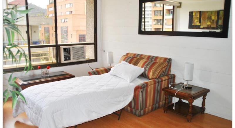 Furnished and fully equipped apartments, designed to make your stay comfortable and pleasant; its features make of this hotel the best choice of accommodation for business or pleasure trips in Santiago de Chile. It is located in the capital's east area, close to shops, restaurants, bureaux de change, and points of interest such as San Cristobal hill, museums, parks and shopping center. There are ski resorts within an hour and, if you prefer sailing, the sea is less than two hours away. All the apartments have air conditioning, kitchen, dining room and equipped living room, heating, LCD TV with cable and wireless internet. ***Chilean customers must pay 19% VAT on arrival. Foreign clients showing their passports or proof of entry in the country will be exempt. In case of no show, the tax will be levied, regardless of nationality. In case of reservations including breakfast, this will be served in room. * Breakfast for the entire stay is left in the room upon arrival, guests must distribute. It is a kit consisting of bread, milk, juice, ham, cheese, etc.