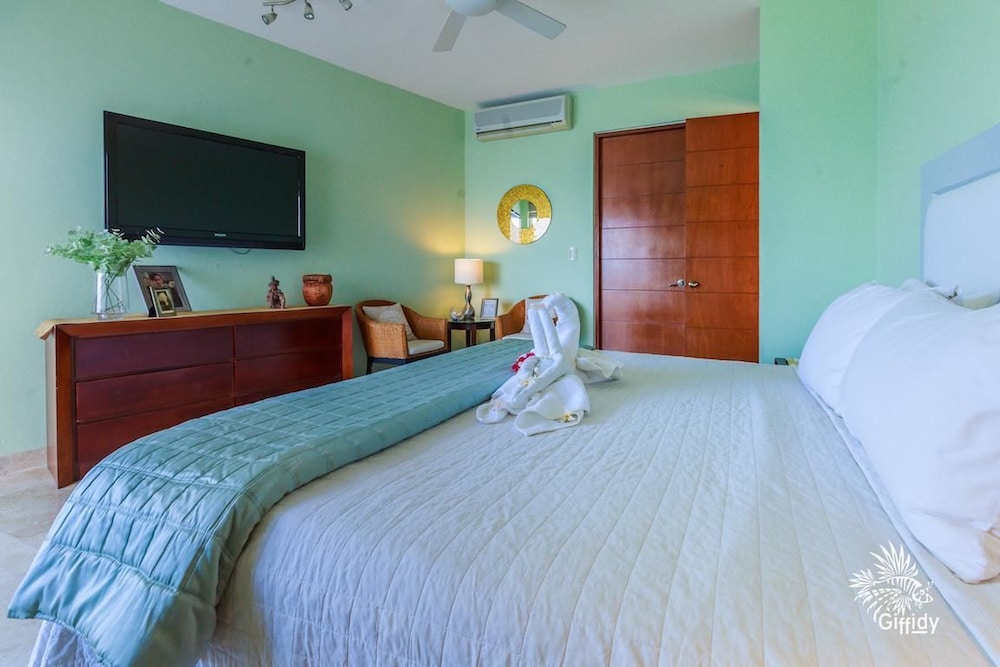 The hotel is located on Isla Mujeres, a beatiful and peaceful island located just 15 min by boat from Cancun, yet maintains its quaint island charm.Three bedroom condos are compleatly furnished, and are equipped with full kitchen, washer and dryer, iron, kitchen utensils, towels and linens.