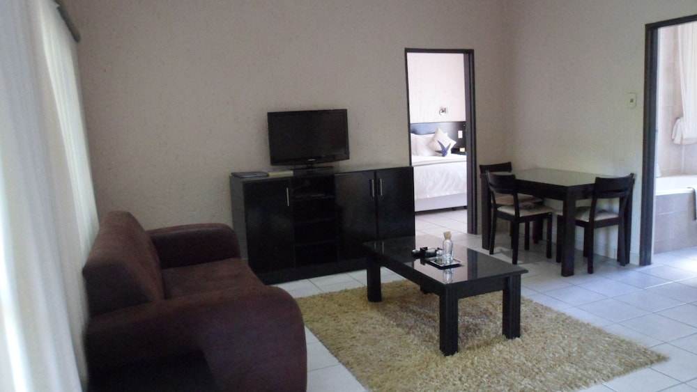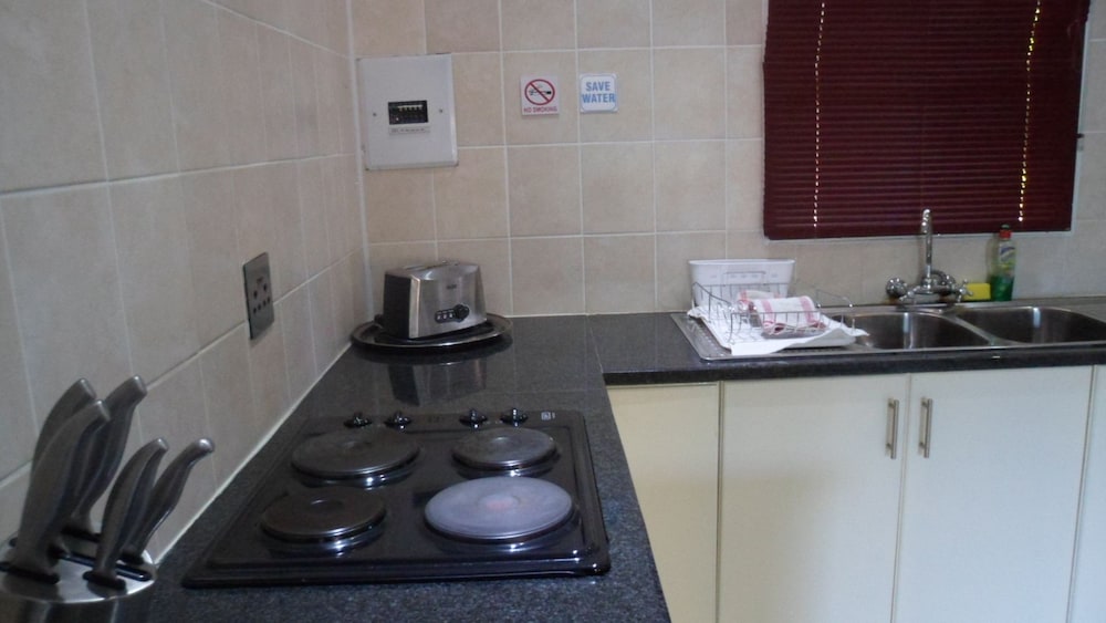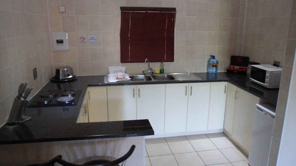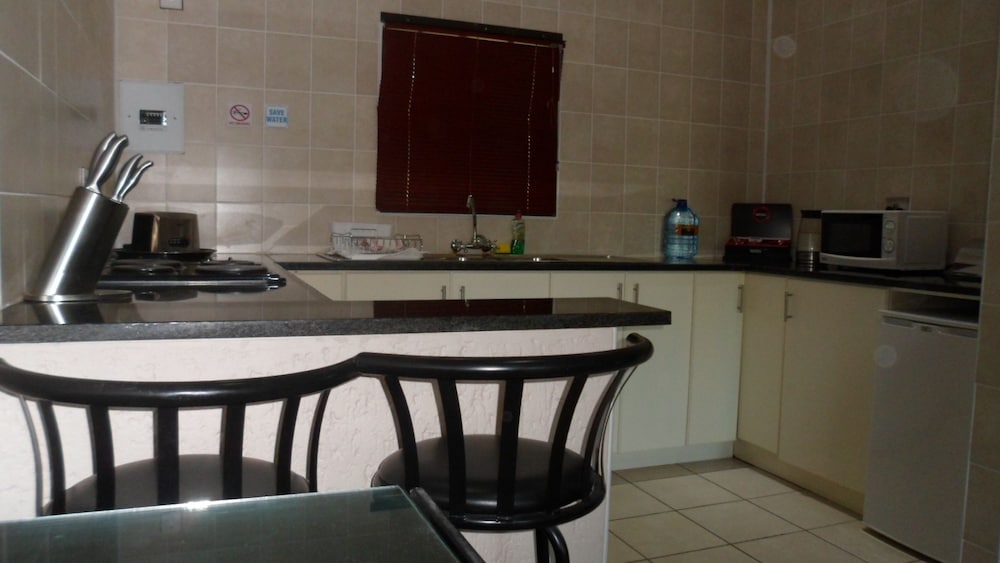 Queness Inn is situated on the main road in Maun on the way to the famous Moremi Game Reserve, and offers eight comfortable apartments all fully equipped with air-conditioning, DStv and internet.Each apartment has a spacious and modern kitchen fitted with a bar fridge, stove, microwave, kettle and all accessories you might need. The bedrooms all have an en-suite bathroom with a bath and shower, and are furnished with a cupboard, dressing table. bedside tables, a safe and drawer space. The large family rooms have a seperate lounge with couches and a coffee table. The apartments over