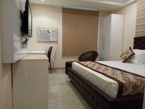 Featuring a garden Radical Palace Hotel and Restaurant is set in Lucknow 3.3 km from Lucknow University. The 3-star hotel has air-conditioned rooms with a private bathroom and free WiFi. The hotel features a terrace and a 24-hour front desk.All guest rooms in the hotel are fitted with a flat-screen TV with satellite channels. Guest rooms have a desk.Guests at Radical Palace Hotel and Restaurant can enjoy a vegetarian breakfast. Guests can grab a bite to eat in the in-house restaurant which specialises in local Grill/bbq and Indian cuisine and also offers Vegetarian options.Riverside Mall Lucknow is 6 km from the accommodation. Chaudhary Charan Singh Airport is 9 km away.