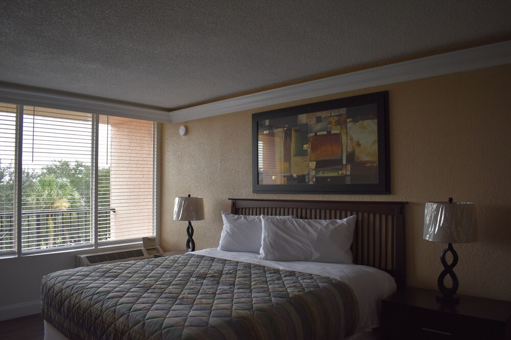 This resort is in a prime location, centrally located within the attractions and business landscape of Orlando. The city centre and Orlando's many attractions are all but a few minutes' drive away making this a perfect place for a fun filled family holiday. When guests are not experiencing the magic of the theme parks, or the fun of Orlando, they can relax in the outside heated pool. Services offered include a 24-hour reception, hotel safe, lift, a games room, a bar and a restaurant, lounge, laundry room, and a business centre. Conference facilities and a car park are also available.