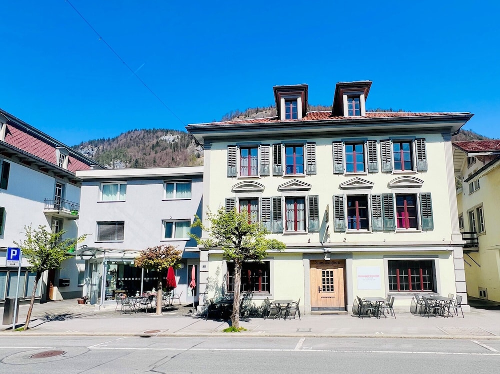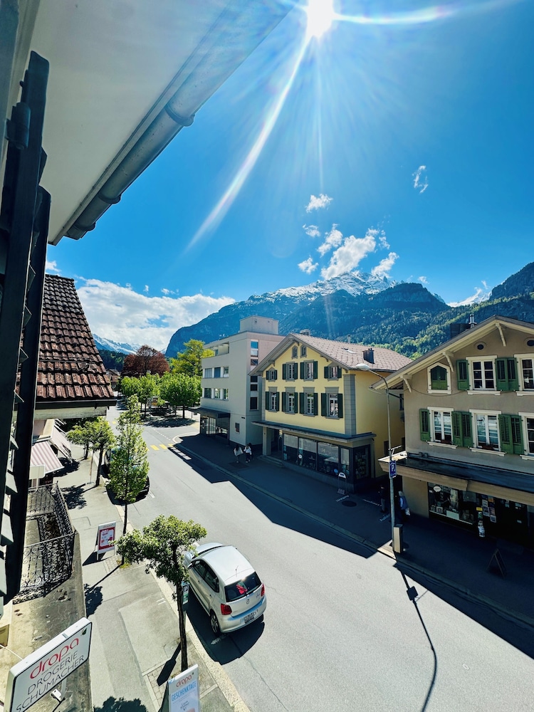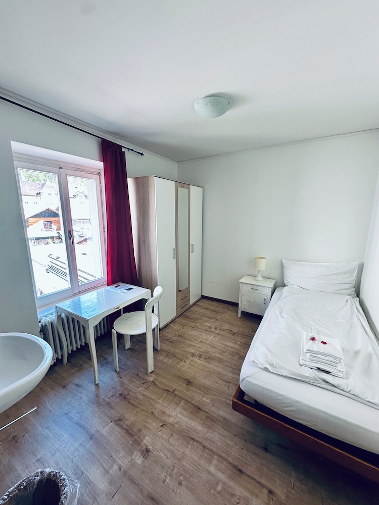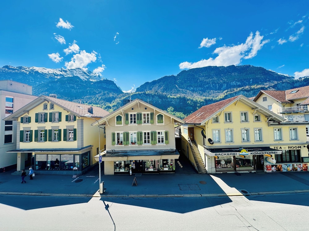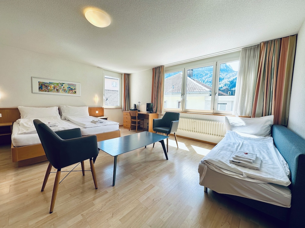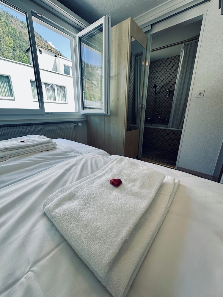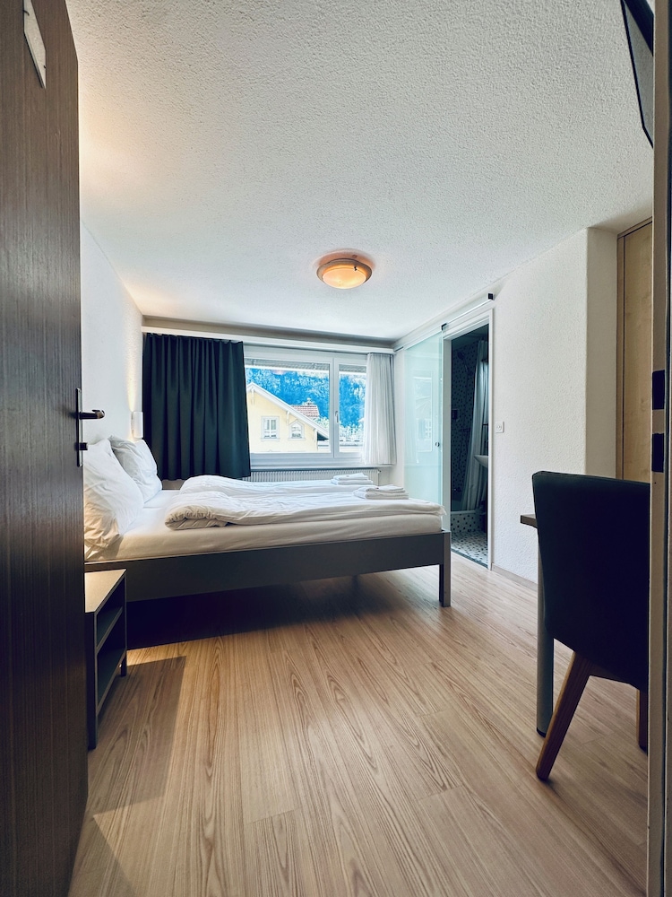 The hotel is located in the centre of Meiringen, directly next to the bus stop and 200 metres from the main train station. It is very close to the Meiringen-Hasliberg cable cars, leading into the on-site hiking and skiing region.This family-friendly hotel consists of the traditional hotel (now a listed building) and a new modern building that are connected with one another. The hotel has air conditioning and comprises a total of 28 rooms. Guests are welcomed in the lobby, which offers 24-hour reception and 24-hour check-out services, as well as a hotel safe, currency exchange facilities and lift access to upper floors. Guests can enjoy a drink at the café and bar and dine in the restaurant. Additional amenities include Internet access, room and laundry services as well as a car park for those arriving by car.All rooms are en suite with a shower, a bath and a hairdryer. Rooms come further equipped with a direct dial telephone, satellite/cable TV, Internet access and a safe. Air conditioning and central heating are standard features of all accommodation.Guests can enjoy a refreshing dip in the hotel's indoor public swimming pool. There are many leisure opportunities available at the hotel, including paddle tennis, tennis and, for an additional fee, golf. There is also an entertainment programme for both children and adults.The hotel serves a breakfast buffet while the lunchtime and evening meals can be enjoyed à la carte or as a set menu.
