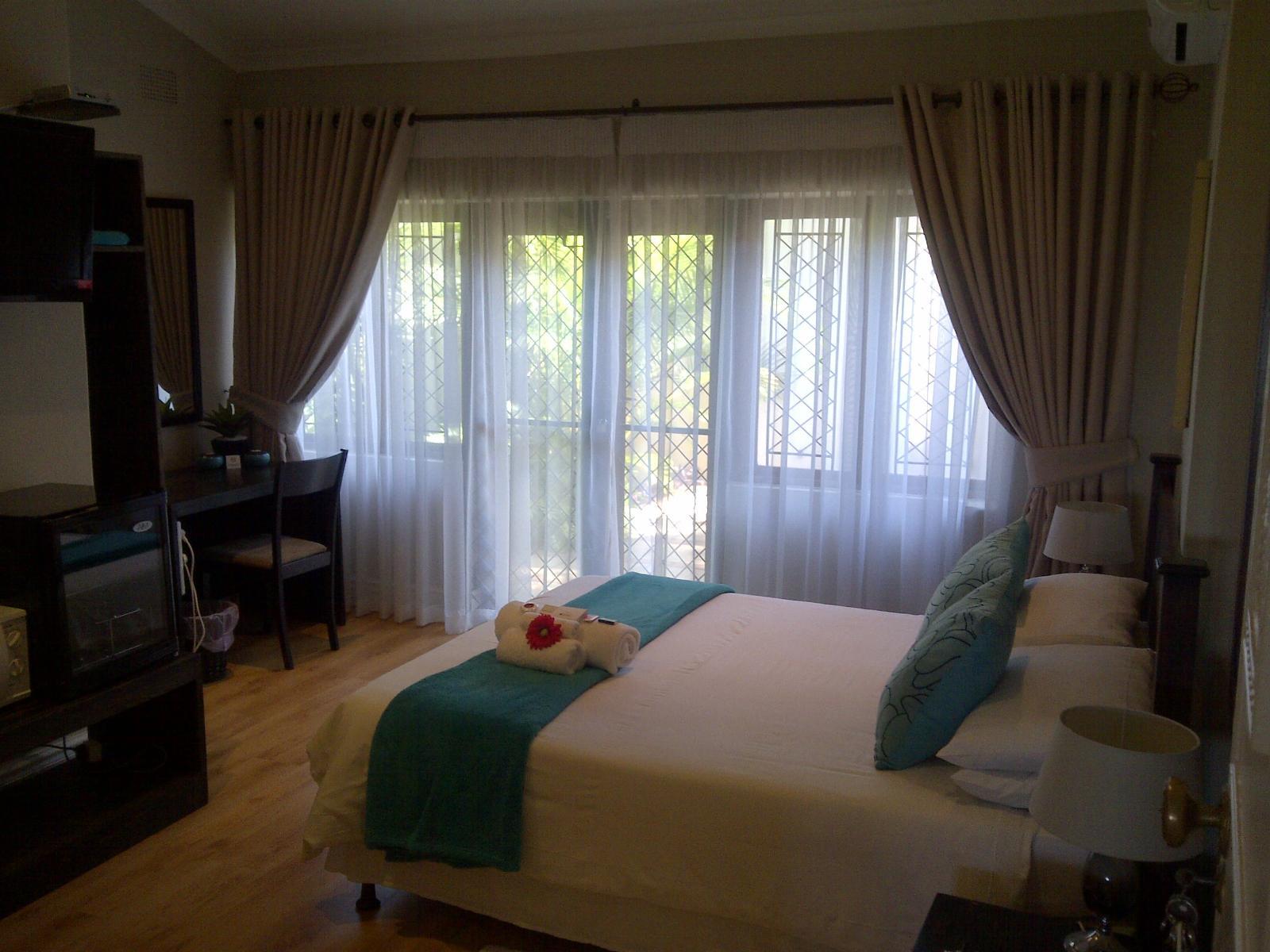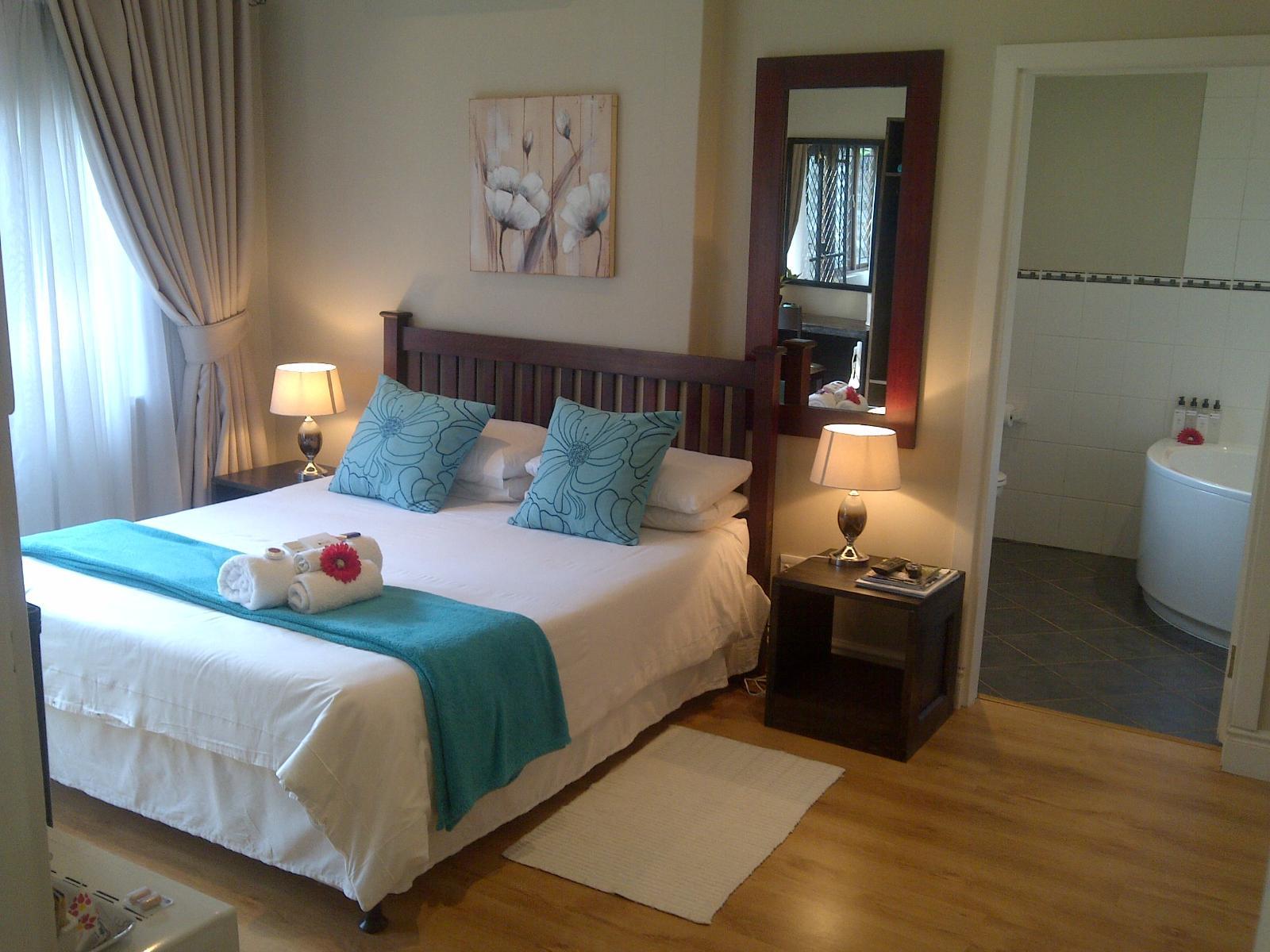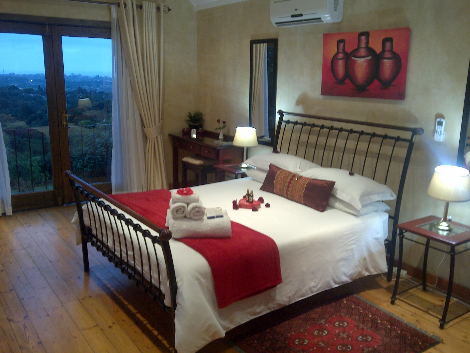 Red Tudor Bed and Breakfast is nestled in the leafy suburb of Westville. We offer beautiful accommodation in four spacious and individually decorated rooms with views of Durban and the Indian Ocean. The accommodation is ideal for the discerning businessman and the tourist.Our rooms are named after the four elements water, metal, earth and fire, and have the finest quality linen and towels. Each room is equipped with a flat screen TV with DStv decoder, air-conditioning and tea and coffee-making facilities.Relax in the large swimming pool and have a cold drink at the bar.