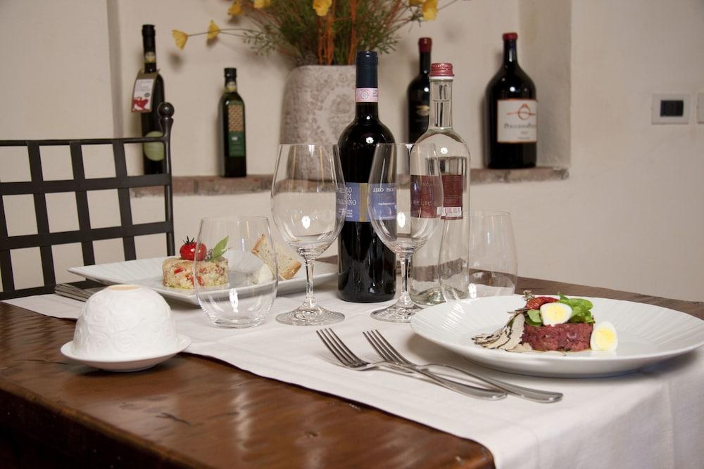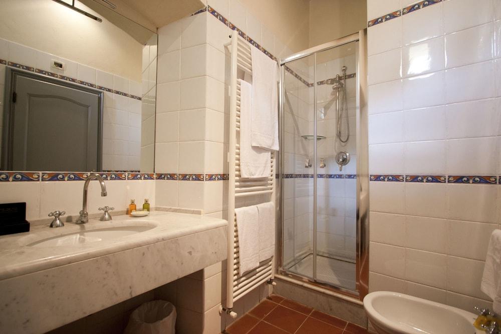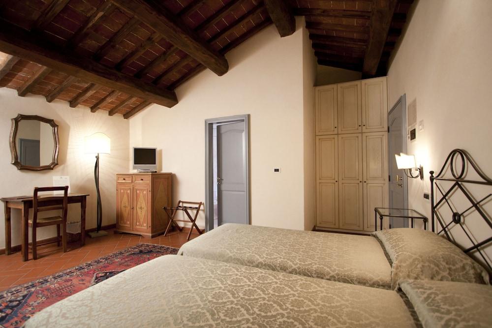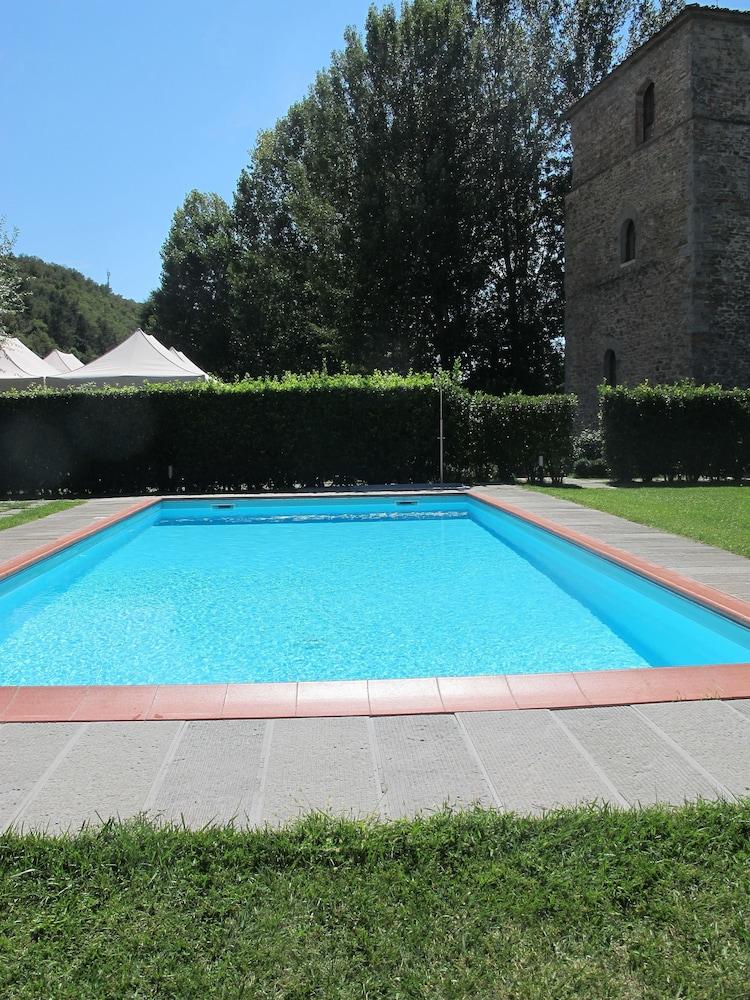 Nestled in the countryside of Arezzo Relais Torre Santa Flora offers the ideal location for experiencing the best nature art wine and food of Tuscany and Umbria. Free WiFi is available in all rooms.Only 15 minutes from Arezzo's highway and railway stations Torre Santa Flora is a perfect starting point for visiting the art cities of Cortona Firenze Siena and Perugia which are less than an hour away. In the nearby area you can also enjoy hiking cycling and horse-riding – or just take a dip in the hotel pool.Once a Lombard tower a place of rest for knights and travellers this elegant hotel offers the perfect place for you to unwind in the peaceful countryside surroundings by the traditional fireplace in the comfortable lounge area decorated with traditional Tuscan furnishings.Special offers are available for 2 and 7 night stays.