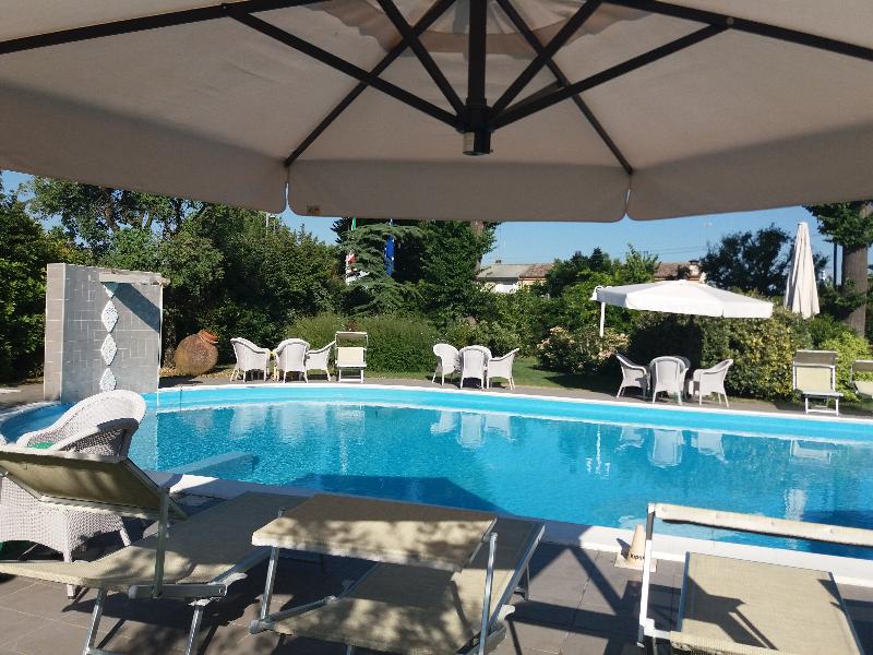 The Hotel Relais Villa Roncuzzi is a small charming hotel nestled in the lush green countryside of Emilia-Romagna, just outside Ravenna. The Relais has been obtained from the restoration of a Country house of the early 1800, already owned by the Poor Clares of Ravenna. A great place to experience the charm of the Romagna countryside surrounded by orchards and vineyards, enjoy the tranquility, the slow pace and the simple pleasures of the typical welcome of the Land of Romagna, for a stay in harmony with nature, art, history and gastronomy. It's set in a garden with trees and swimming pool. It's an ideal base to discover the great heritage of Emilia-Romagna Region: Ravenna, ancient capital of the Byzantine Empire, Faenza, famous worldwide for its ceramics, Bologna, home to the oldest university in Europe, and Ferrara, cradle of the noble House of Este. Ferrara, the neighbouring Po Delta and Ravenna share the honour of being UNESCO World Heritage sites. Due to its privileged position, from here it's easy to quickly reach the coast of the Adriatic Sea and the major theme parks of Mirabilandia and the Safari Zoo, fun for youngs and olds. The restaurant "Casa Roncuzzi" offers fine food and wine specialties of Emilia-Romagna Region.