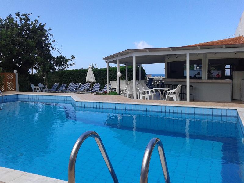 Welcome to REMI Studios and Apartments!This attractive property is located in the resort of Stalis only a 5 minute walk to the resort centre, beautiful sandy beach and the bus stop direction Agios Nikolaos and Heraklion.Couples, groups and families with older children will find these simple, quiet apartments ideal, the Remi apartments are located only 300 metres away from the sandy beach and the resort centre of Stalis and just 150 metres from the nearest supermarket.Outdoor swimming pool and sun terrace with free sun loungers and parasols, Pool snack bar and a reception.The accommodation is split in two separate blocks of two floors each and offers 17 double bedded apartments for 2 - 4 people and the studios for 2-3 people, the both of them (apartments and studios) are equipped with a kitchenette including electric hobs, kettle and a fridge, a shower room and a balcony or terrace.
