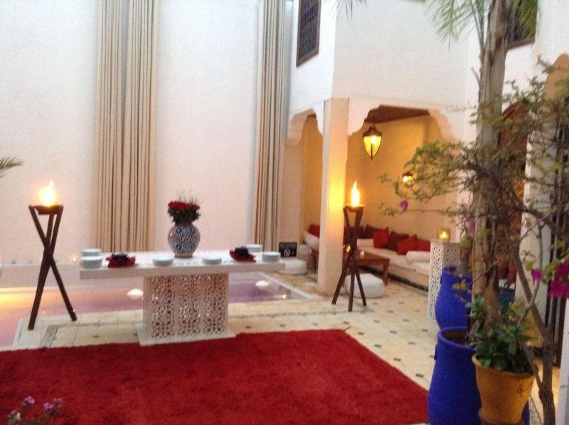 The hotel is located in the south of the old medina, in the Kasbah area, close to the Saadian tombs and the Royal palace - only 10 minutes away from Jamaa el fna square. It is the ideal starting point for explorations of the historic sites around the city. The seven very comfortable bedrooms of the riad have been decorated with ancient oriental furniture. They open up to different semi-private terraces and look down to the patios. All bedrooms are equipped with air-conditioning, including pollen filters, responding to the highest environmental standards. Wintertime the property offers the comfort of a central heating system. Each bedroom is equipped with a safety box as well.