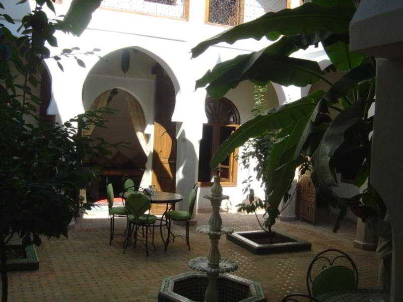 The hotel is housed in a traditional Moroccan house which once belonged to an old noble family. It has a convenient location in the heart of ancient Medina in Marrakech. The property is an oasis of peace, yet only a short walk from the hustle and bustle of the souks and the main square, Djemaa el Fna. Restaurants can be found around 5 minutes away, and nightlife options are located some 25-30 minutes from the hotel. Gueliz bus station is around 30 minutes away, and Oukaimeden train station is some 90 minutes away. The Palais Bahia, Saadian Tombs, Menara Garden and the Majorelle are all some 20 minutes' walk away. The area around Marrakech includes many natural attractions, including Lake Ifni and the Ourika River, some 50 minutes' drive away. Marrakech-Menara Airport is around 20 km away.This charming residence is both refined and luxurious, filled with beauty that will both inspire guests and offer a unique Moroccan experience. It offers 5 guest rooms and 2 Moroccan-style living rooms overlooking a large patio with a fountain and beautiful trees in the middle. The spacious terrace of the riad is used as sun terrace and offers splendid views of the Atlas Mountains and Medina. The hotel is air conditioned and includes a lobby, 24-hour reception and check-out service, a hotel safe, café, restaurant and WLAN Internet access. Full room service is also available.The hotel has five double bedrooms, each with its own en suite bathroom with shower, bath and hairdryer. Rooms are equipped with remote control air conditioning and heating facilities, double or king-size beds, a direct dial telephone, TV, Internet access, safe, tea and coffee making facilities and a washing machine. Rooms also feature a terrace.Lunch is offered as a set menu and dinner is available as a menu or à la carte.