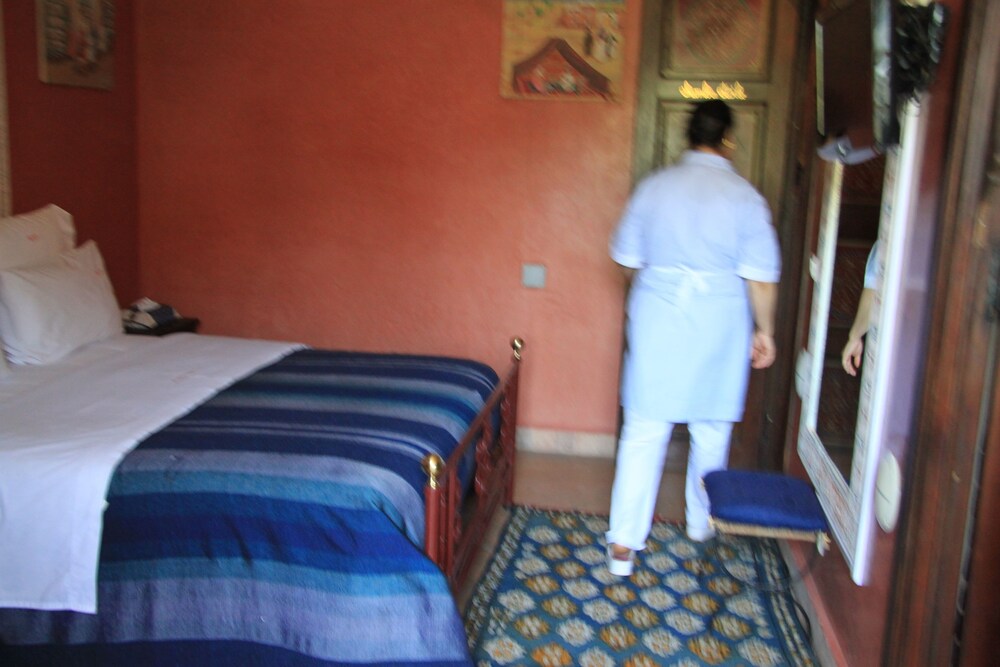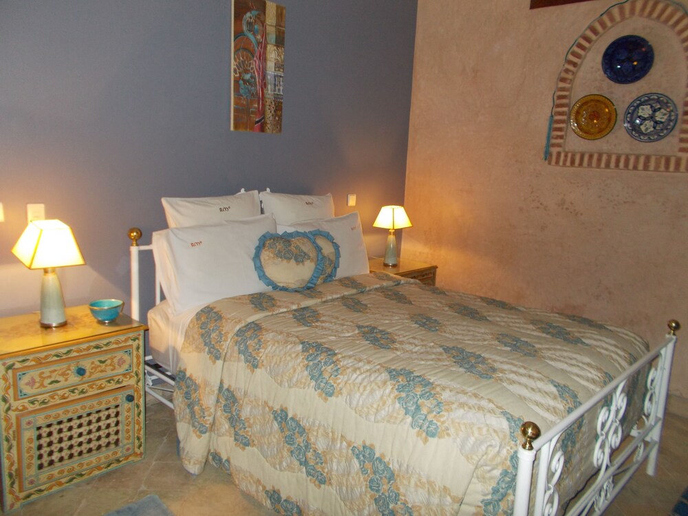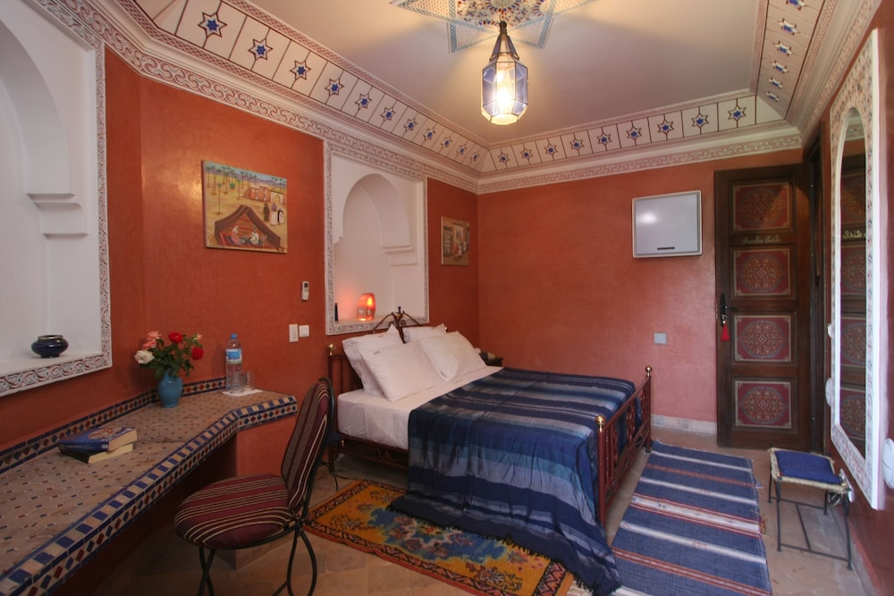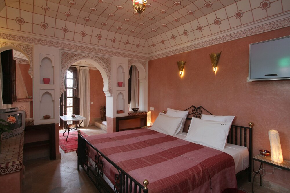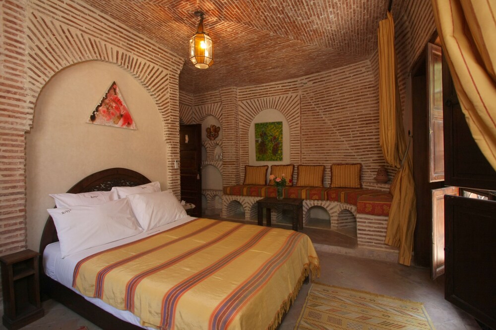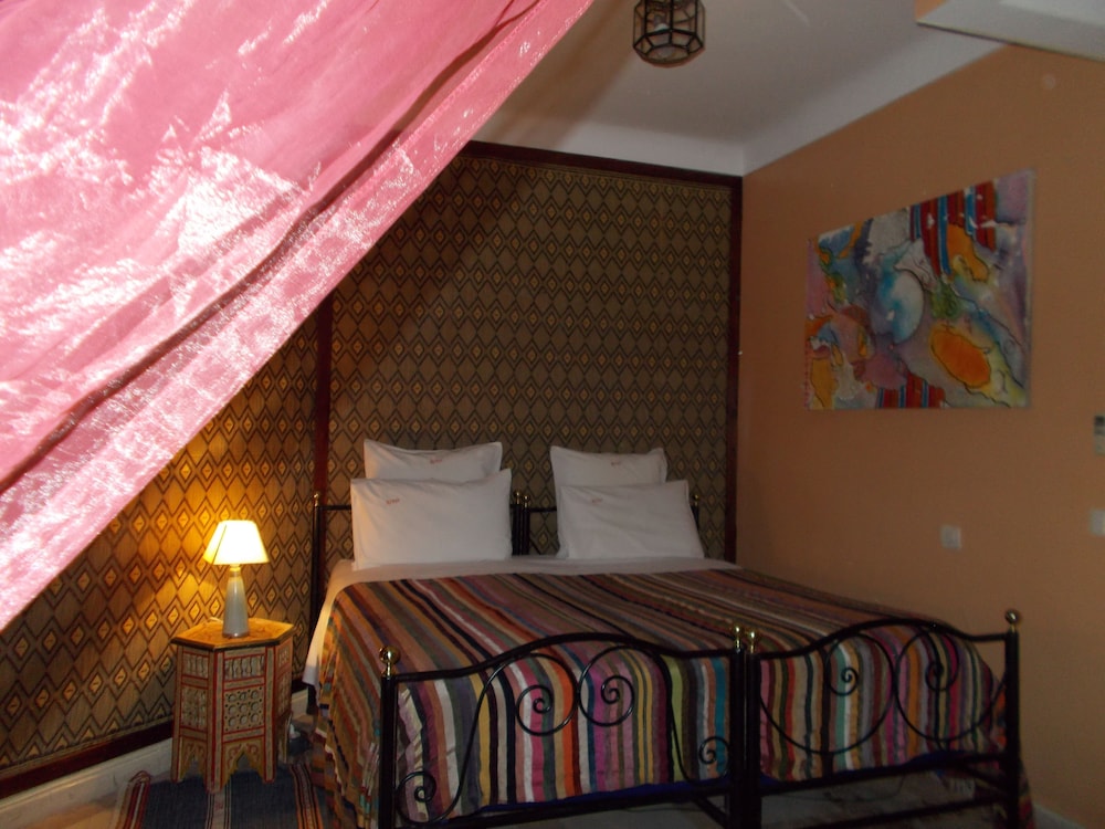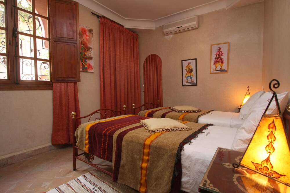 Located in the heart of Guéliz, one of the most beautiful districts of Marrakech, Riad Mazal is a guest house with a privileged location and elegant accommodation near the Majorelle garden with the new museum dedicated to Yves Saint-Laurent, it provides you with free secure parking on site. Riad Mazal offers air-conditioned and elegantly decorated rooms including a minibar with satellite TV. Equipped with coloured tiles, their private bathroom is equipped with a shower or bathrobes and a hair dryer and free toiletries. Each room has been decorated to create a warm atmosphere. Wi-Fi connection is provided free of charge throughout the hotel. Surrounded by many typical Moroccan and international restaurants, New shopping centres, modern, Marrakech plaza, and not far from Jamaâ El Fna Square, 10 minutes by car or taxi.. For your relaxation, the hotel has an outdoor swimming pool and hammam, massages (on request) and a solarium with a magnificent view of the Atlas Mountains. Traditional dishes 100% Moroccan can be prepared on request by the head of the establishment with fresh market produce. Served on the terrace or in one of the common rooms, near the fireplace.Riad Mazal offers you an unforgettable stay with friends or family with exceptional qualities and services.