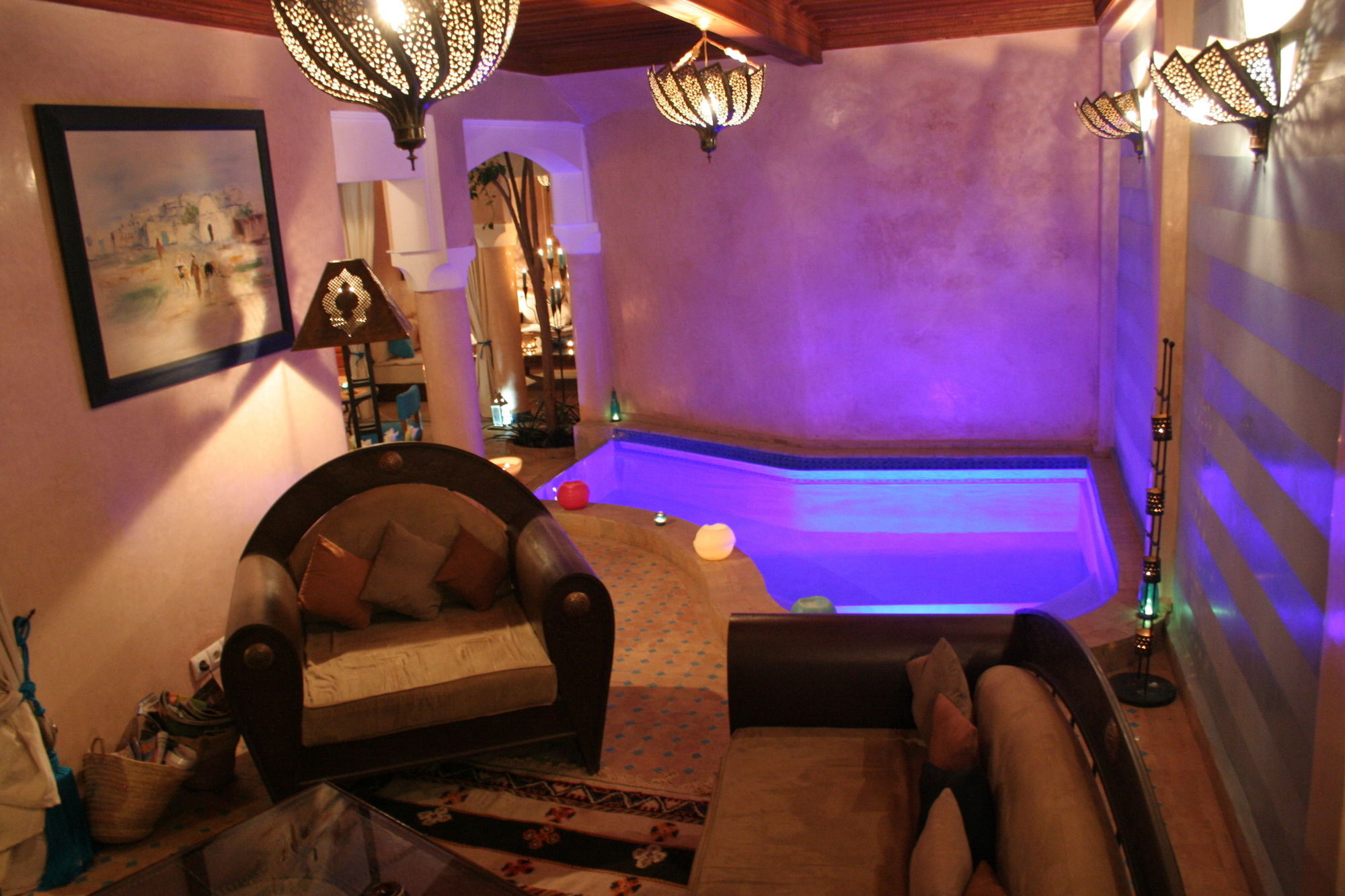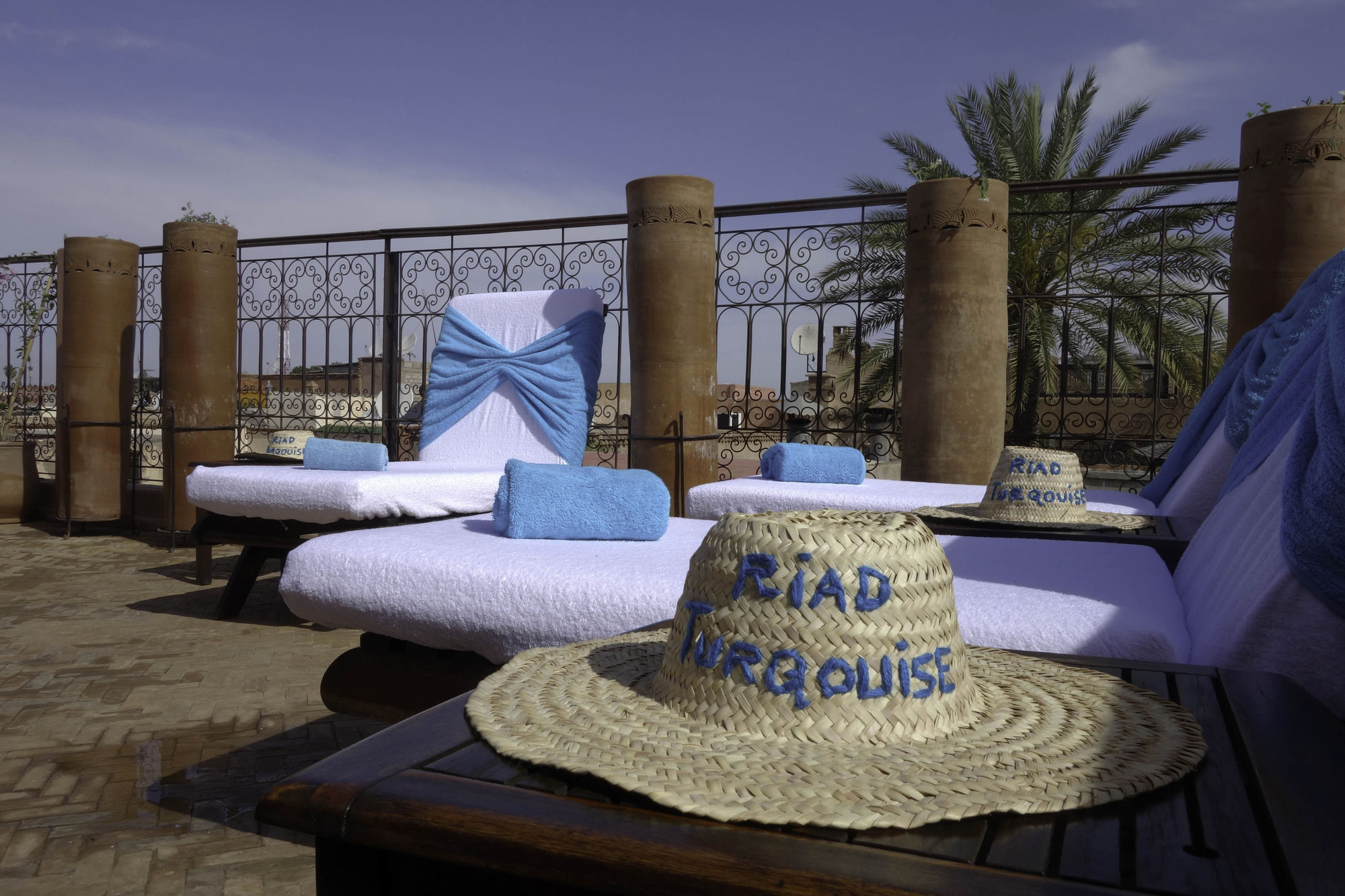 Riad Turquoise is in the heart of Marrakech, walking distance from El Badi Palace and Museum of Moroccan Arts. This 4-star riad is within close proximity of Bahia Palace and Dar Si Said Museum.Rooms Treat yourself to a stay in one of the 6 individually decorated guestrooms, featuring fireplaces and flat-screen televisions. Rooms have private balconies. Complimentary wireless Internet access keeps you connected, and satellite programming is available for your entertainment. Conveniences include safes and coffee/tea makers, and you can also request irons/ironing boards. Relax and unwind with body treatments and facials. You're sure to appreciate the recreational amenities, including an outdoor pool and a spa tub. This riad also features complimentary wireless Internet access, babysitting/childcare (surcharge), and tour/ticket assistance.Dining Satisfy your appetite at the riad's restaurant, which serves breakfast, lunch, and dinner, or stay in and take advantage of room service (during limited hours).Business, Other Amenities Featured amenities include a 24-hour front desk and a library. A roundtrip airport shuttle is provided for a surcharge (available on request).