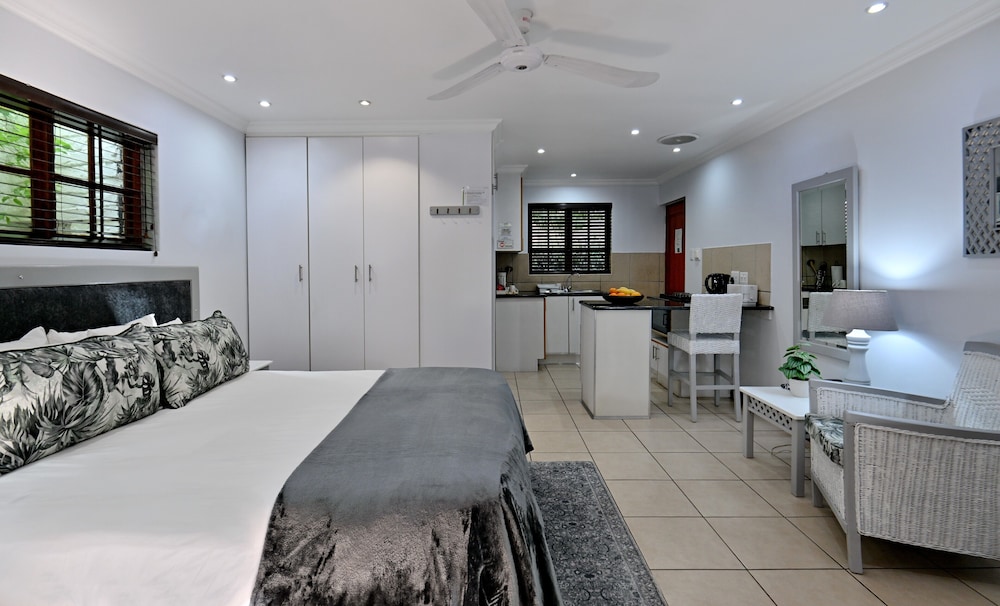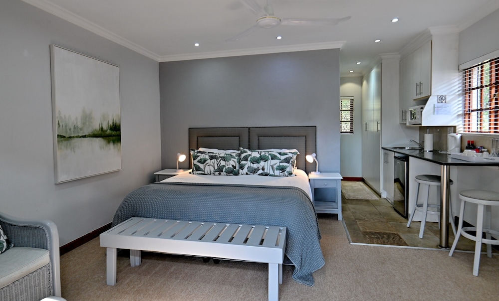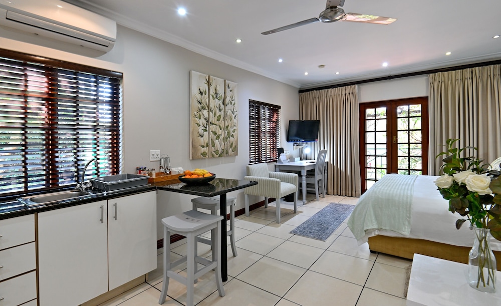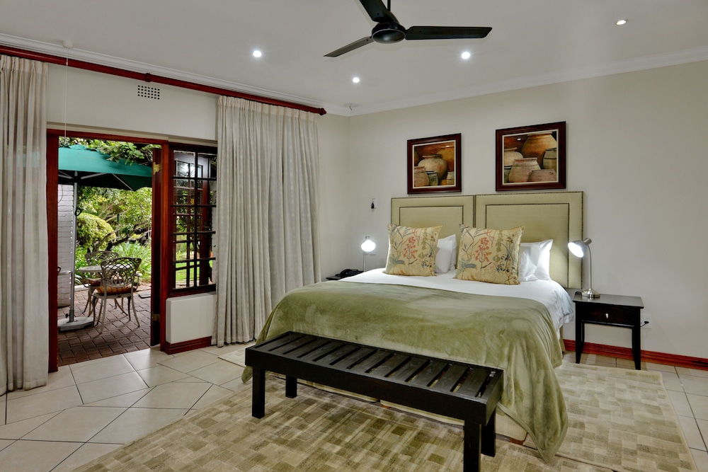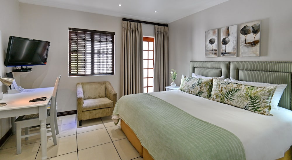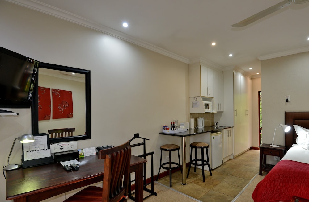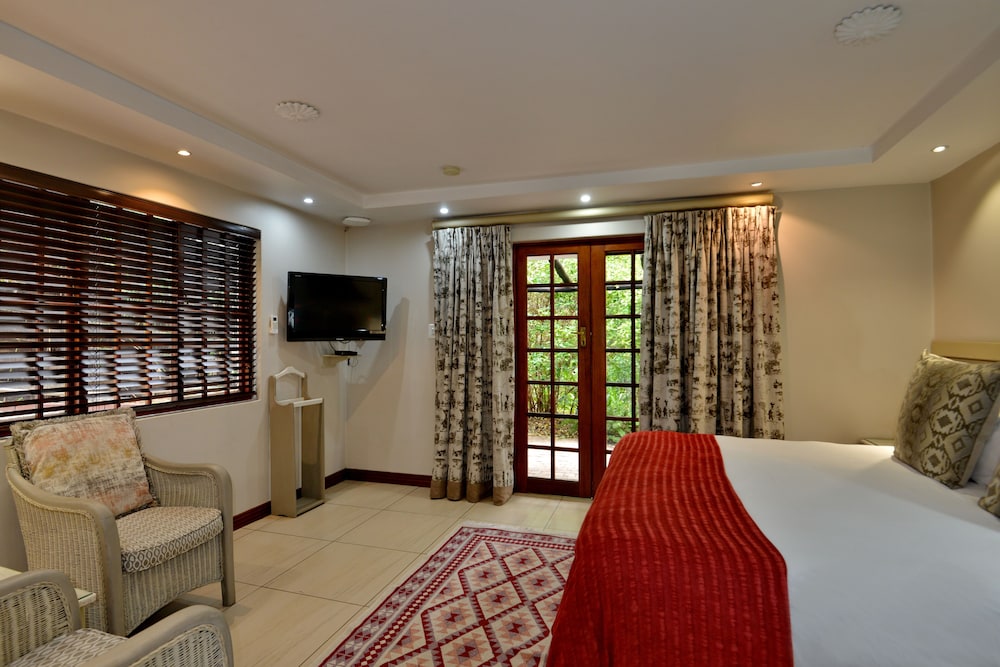 When you stay at Rivonia B&B in Sandton, you'll be in the business district and within the vicinity of Kyalami on Main and Montecasino. This 4-star guesthouse is within the vicinity of Pieter Toerien Theatre and Johannesburg Stock Exchange.Rooms Make yourself at home in one of the 50 guestrooms featuring microwaves and minibars. Rooms have private furnished balconies or patios. Flat-screen televisions with satellite programming provide entertainment, while complimentary wireless Internet access keeps you connected. Bathrooms have complimentary toiletries and hair dryers.Amenities Take advantage of recreation opportunities such as an outdoor pool or take in the view from a terrace and a garden. This guesthouse also features complimentary wireless Internet access, tour/ticket assistance, and barbecue grills. Guests can catch a ride on the complimentary shuttle, which operates within 2km km.Dining Quench your thirst with your favorite drink at a bar/lounge. A complimentary full breakfast is served daily.Business, Other Amenities Featured amenities include a business center, complimentary newspapers in the lobby, and dry cleaning/laundry services. A roundtrip airport shuttle is provided for a surcharge (available on request), and free self parking is available onsite.