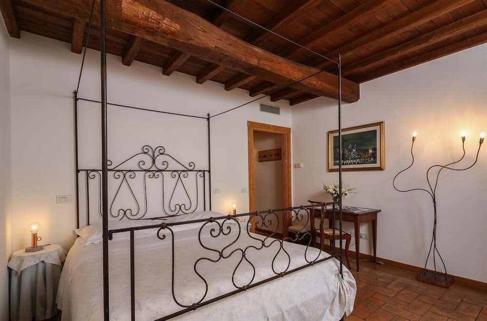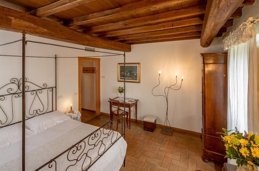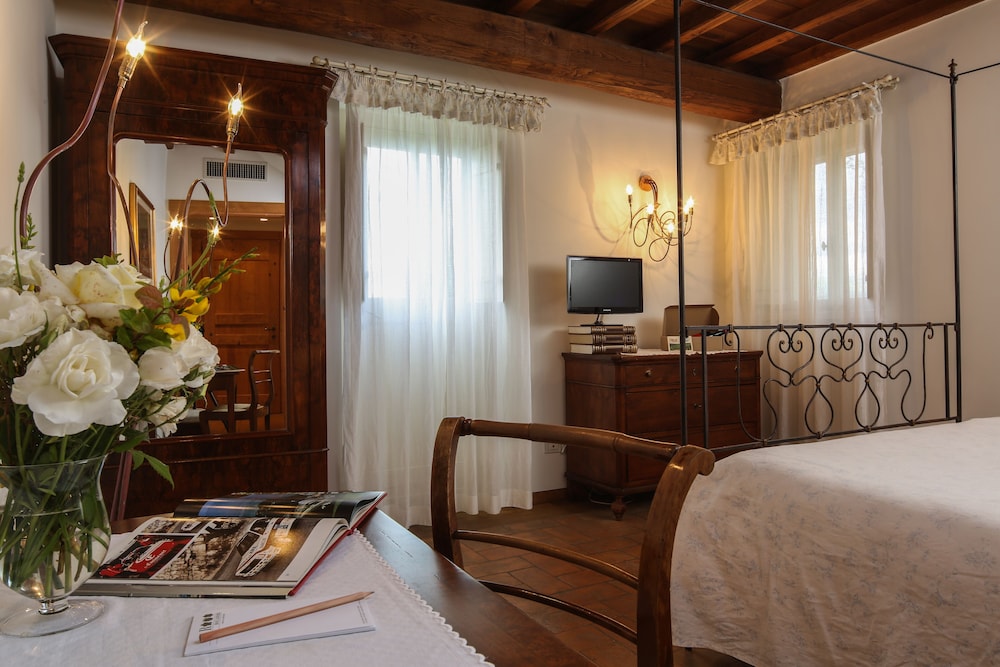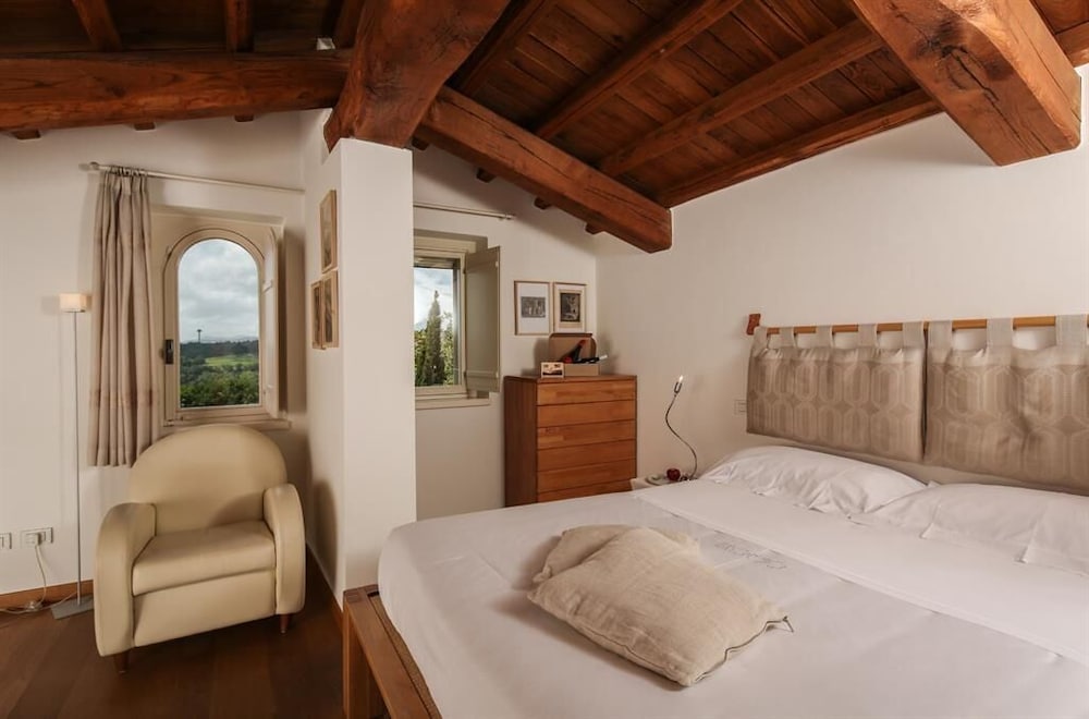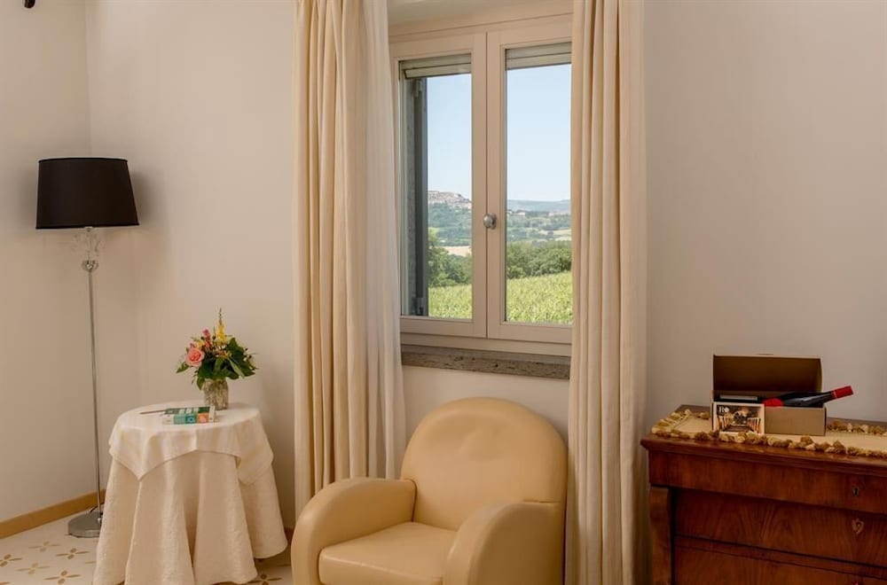 Overlooking vineyards and olive groves Roccafiore Spa & Resort is set in the Monti Martani hills just 4 km outside Todi. This converted Umbrian farmhouse is now a luxury countryside resort and spa.Surrounded by unspoilt nature the Roccafiore boasts a free wellness centre with an indoor pool hot tub and relaxation areas. An outdoor swimming pool is open in mild seasons and is surrounded by gardens and vineyards.Rooms are named after world-famous vintage racing cars according to the hotel's owner passion for motors. Each room has a different style and is furnished in wood and in natural fabric or with pastel shaded decorations and antique furniture. Modern rooms are also available.The restaurant of the Roccafiore offers a choice of typical regional cuisine featuring locally produced ingredients. Breakfast is a generous buffet.The resort is in Chioano di Todi. The surroundings include several unique cities of art such as Perugia Assisi Orvieto Spoleto Gubbio and Montefalco.