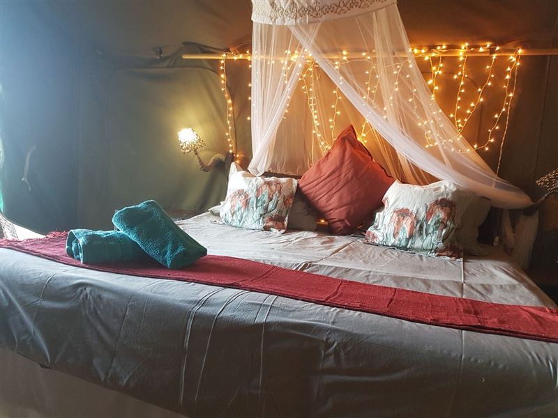 Game drives can be arranged on a open game-viewer, or drive around in your own vehicle on the more than 80km dirtroad on-site. Seventeen species of plainsgame can be viewed in abbundance,and the wetlands are a birdwatcher's dream.
