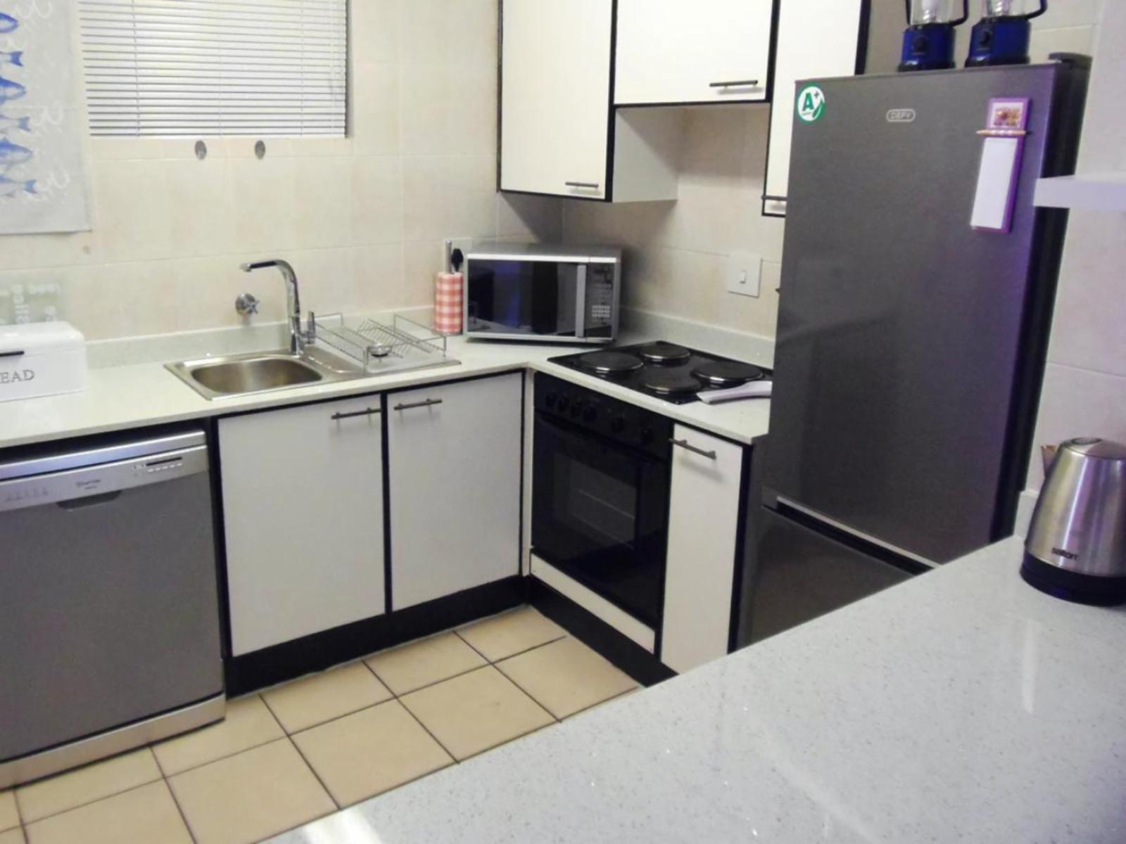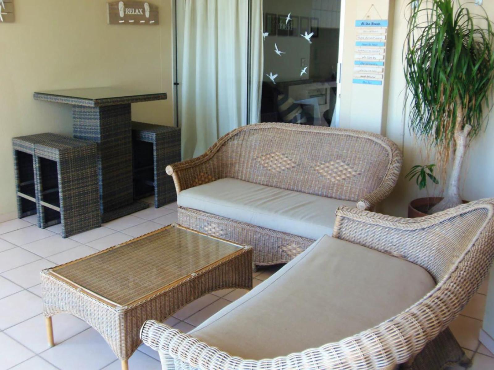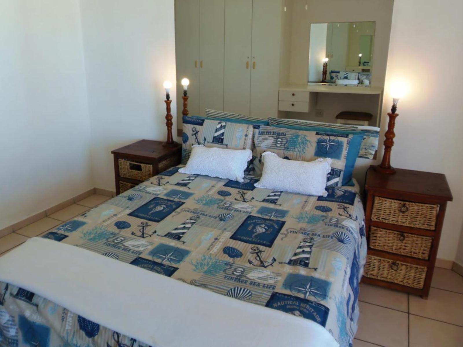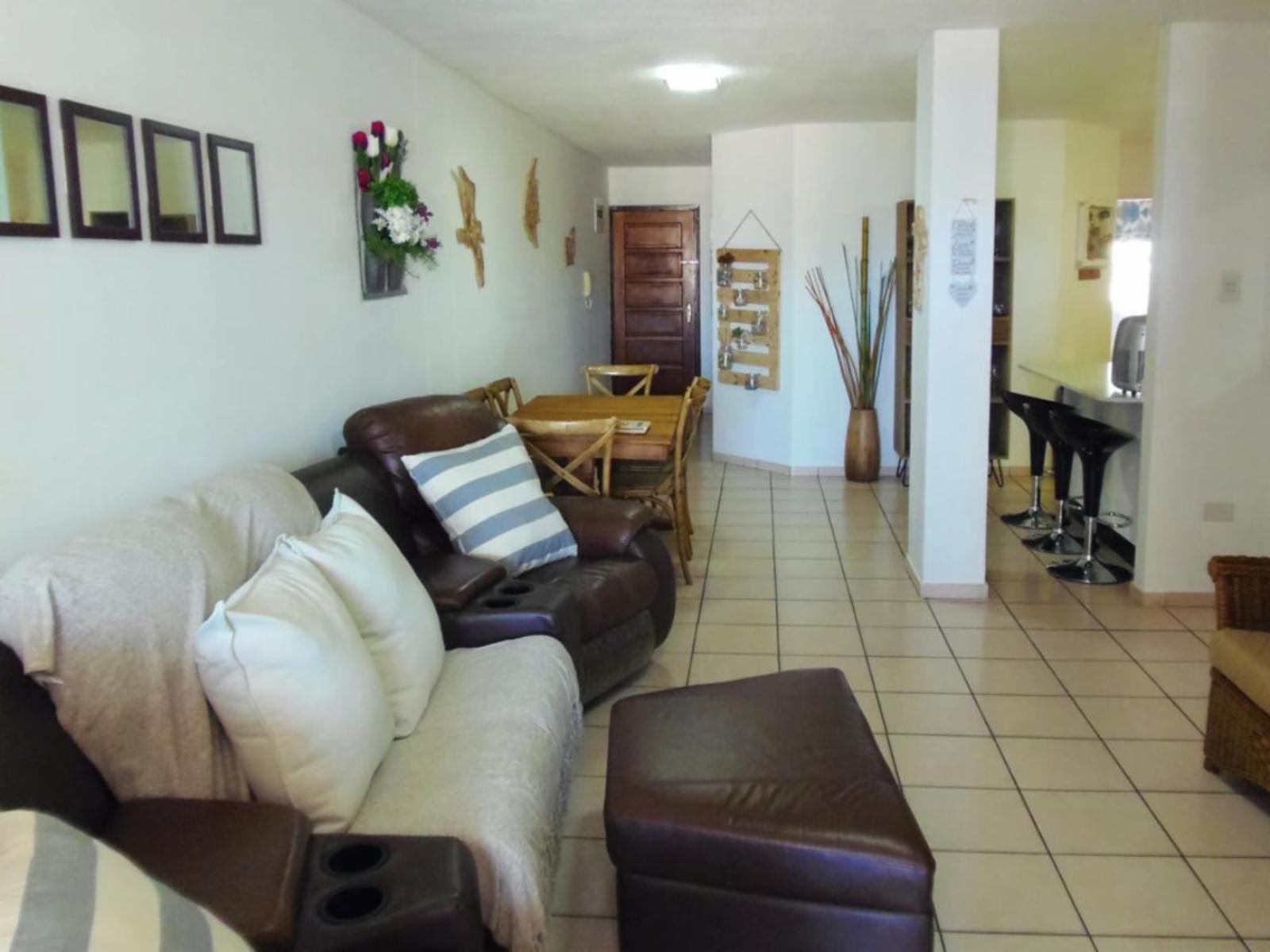 Rondevoux A is a self-catering apartment located in Margate, on the South Coast of KwaZulu-Natal Province. The apartment sleeps six guests and comprises three bedrooms, two bathrooms, and an open-plan kitchen and living area. The main bedroom comprises a queen-size bed and an en-suite bathroom. The second bedroom comprises a double bed, while the third bedroom contains two single beds. The second bathroom is fitted with a bath, toilet and washbasin. Ceiling fans are available in all the bedrooms. The fully equipped kitchen features a stove, fridge-freezer, ice maker,