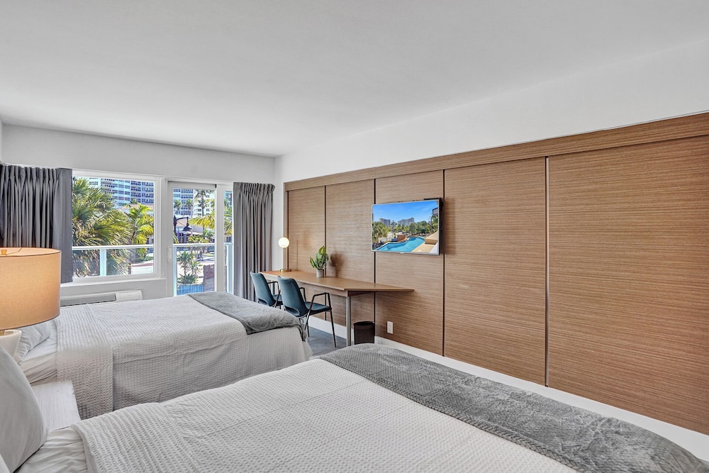 //This 66 deluxe room hotel offers well-appointed, newly renovated rooms in November 2013 within walking distance of the beaches. Relax in our large heated pool or sip a refreshing cocktail while you soak up the beautiful Florida sun! The warm and friendly atmosphere at our beautiful bar and lounge makes you feel right at home but if you want to venture further, there are many fine restaurants and bars for your dining pleasure and entertainment within close proximity. // The position of this hotel makes it an ideal place for a family vacation with all the best that Fort Lauderdale has to offer, close at hand. Within easy reach of the airport and the cruise ships, the hotel is also ideal for that overnight stopover before traveling on to other exotic locations.//