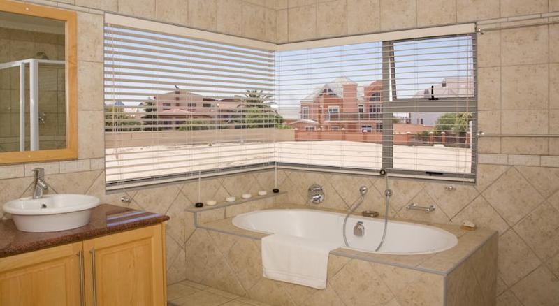 This guesthouse is situated in the quiet seaside residential area of Vogelstrand, approximately 5 km from the center of Swakopmund and a mere 5 minute walk to the beach.The bright, modern rooms are all individually decorated, and equipped with TV, WiFi ,Coffee/Tea Station mini fridge,fan ,heater and safe.Take the Henties Bay Road north out of Swakopmund (C34). Turn left at the third traffic circle into Dr. Schwietering Street. Turn left at the first Traffic circle into Tsavorite Street, where the Guesthouse is to be found on the righthand side of the street.
